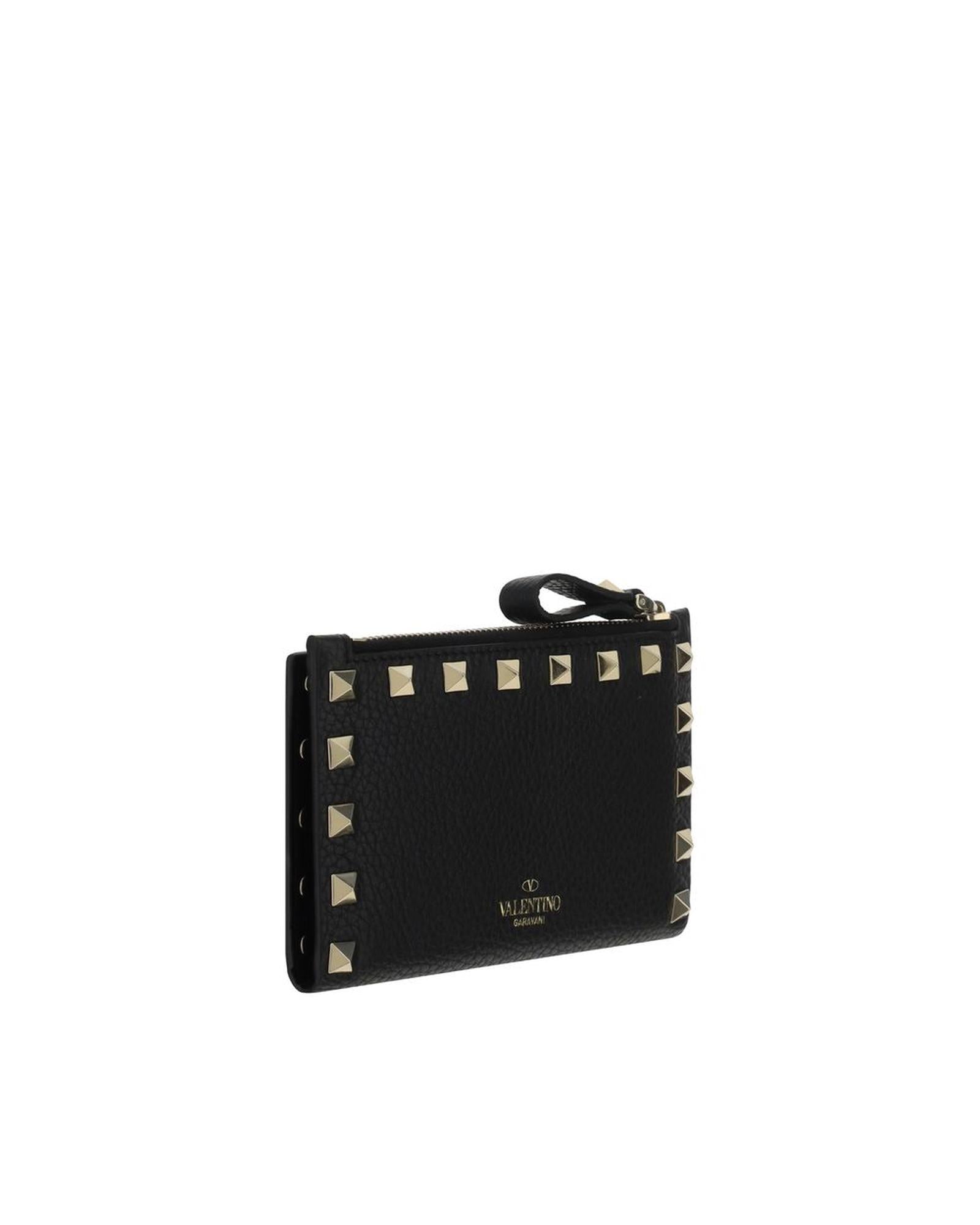 Valentino Garavani Rockstud Leather Card Holder with Studded Detailing and Monogram Women Black Wallets & Pouches