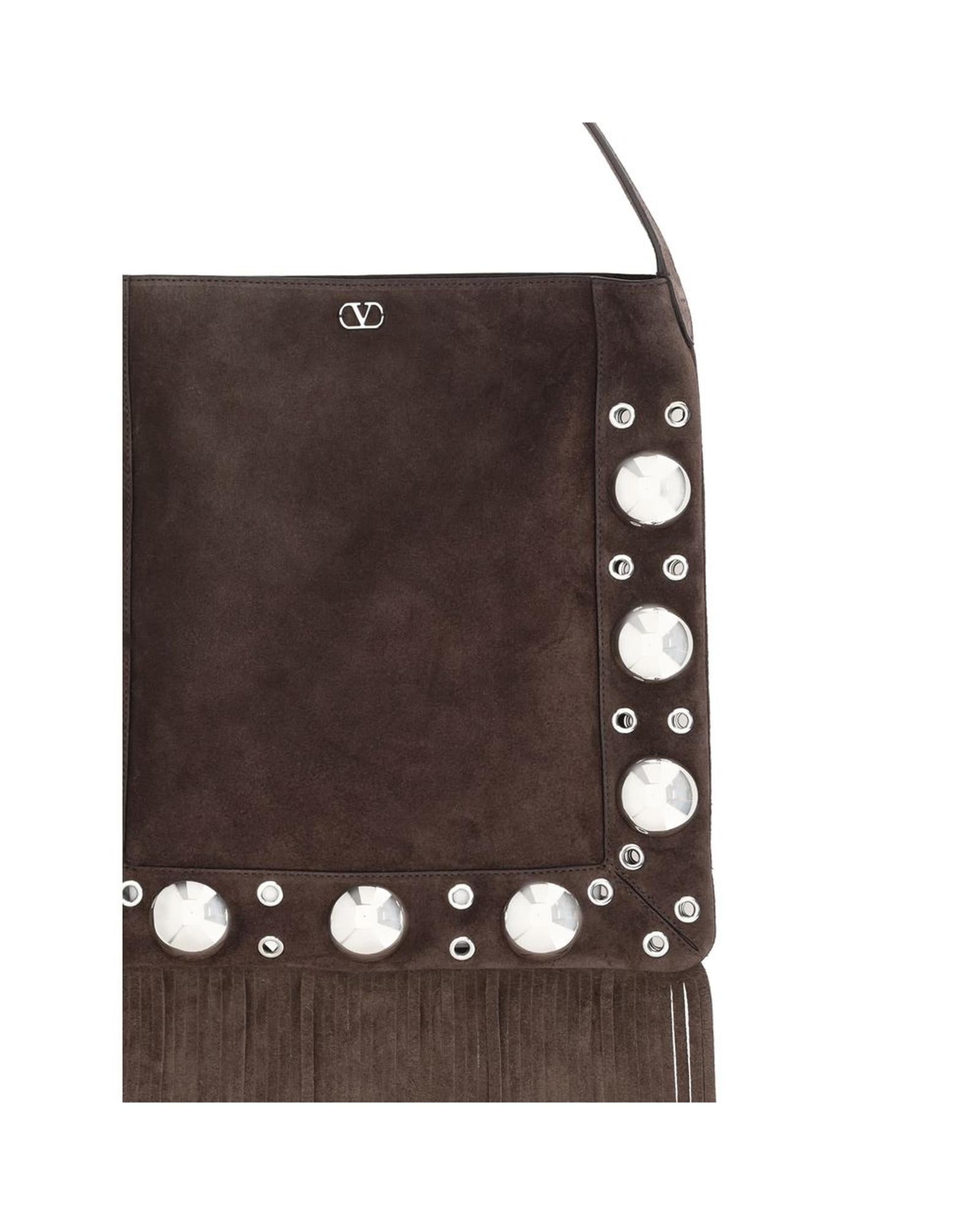 Valentino Garavani uede Fringe Crobody Bag Model VA6Y2B0D06VI0TOBB Men Brown Shoulder Bags