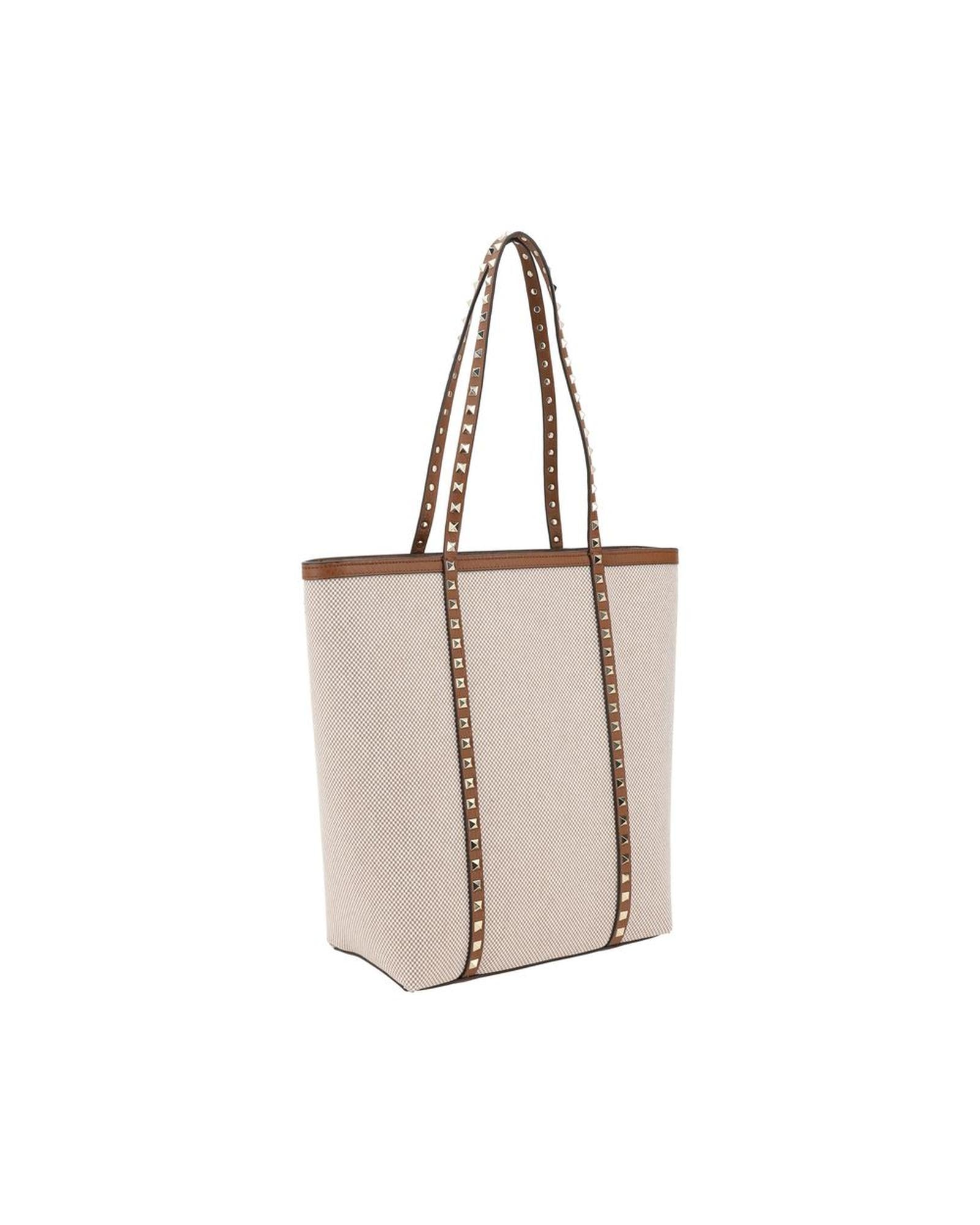 Valentino Garavani Rockstud Tote Medium Canvas Bag Women Beige Shoulder Bags