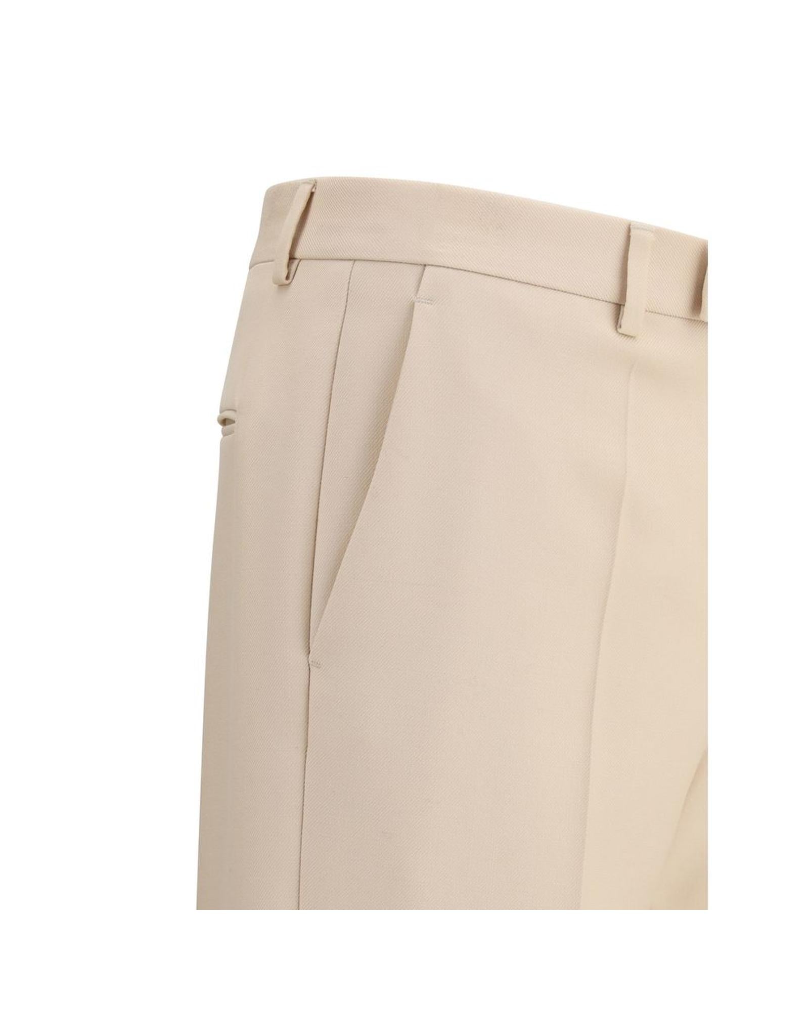 Valentino Wide Leg Trousers Cuffed Hem Men Beige Pants