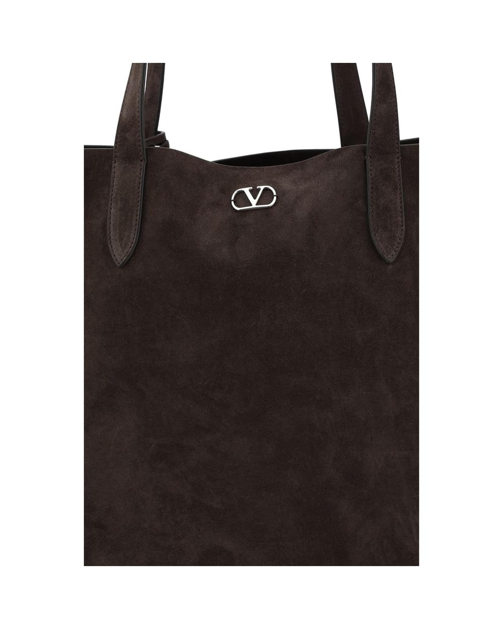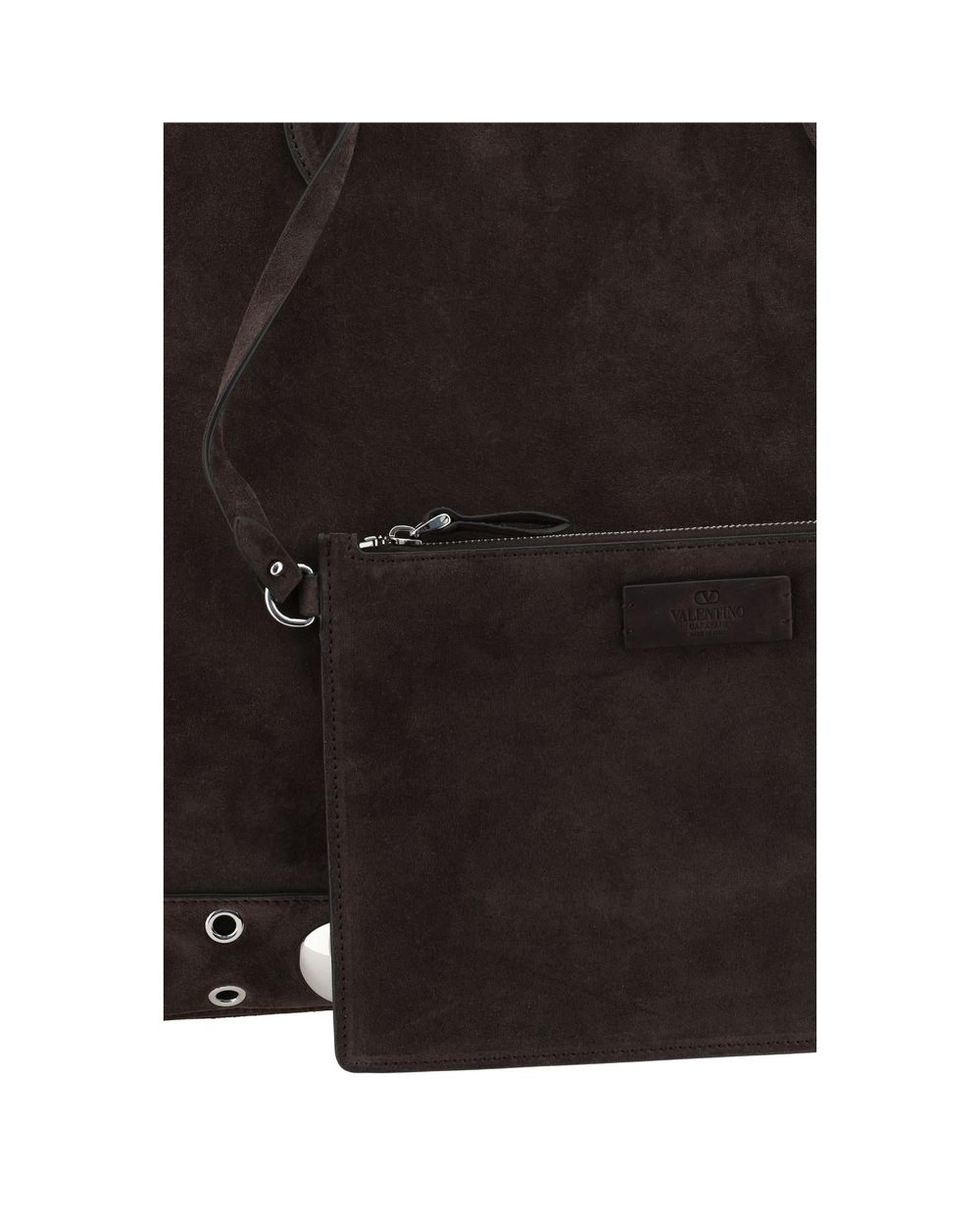 Valentino Garavani Suede Leather Tote Eyelet Detail Men Brown Shoulder Bags