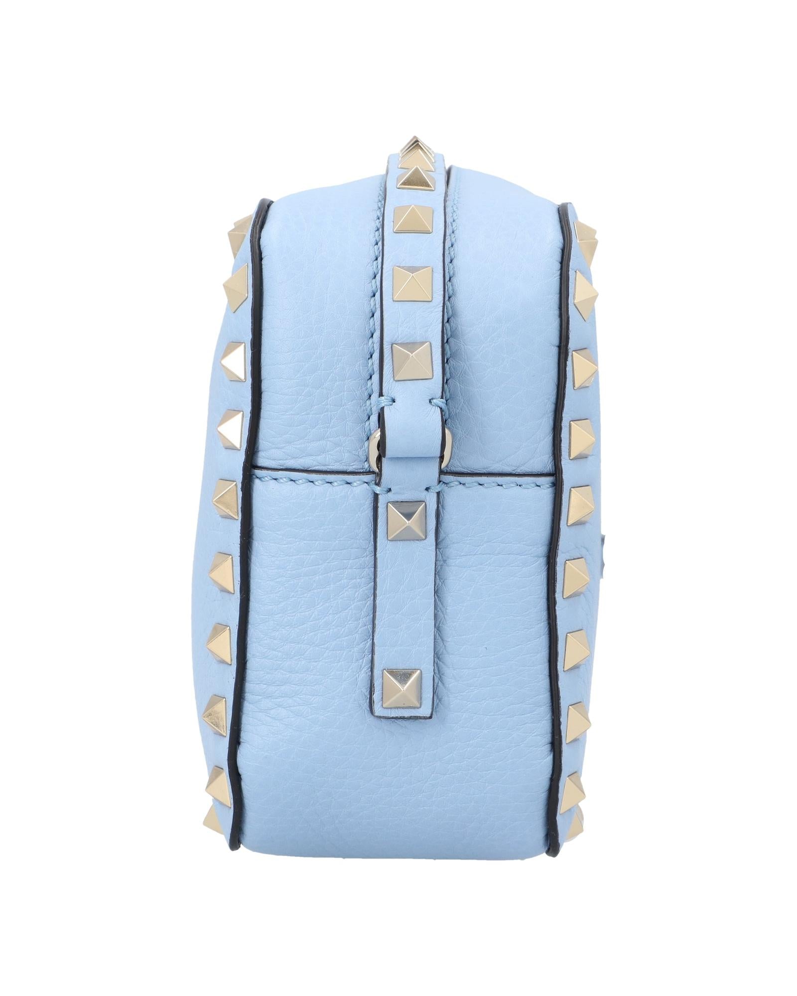 Valentino Garavani Rockstud Small Leather Crossbody Bag is a timeless piece that will elevate any outfit Its classic silhouette and iconic Rockstud embellishments make it both stylish and functional Crafted from supple lambskin leather in a versatile light blue the bag features a secure magnetic closure and a spacious interior Carry it by the adjustable shoulder strap or as a clutch Perfect for everyday use or evening events this bag is a musthave for any woman with a sense of refined style. Crafted from supple lambskin leather Iconic Rockstud embellishments Magnetic closure Adjustable shoulder strap Spacious interior . Animal skin | Calfskin