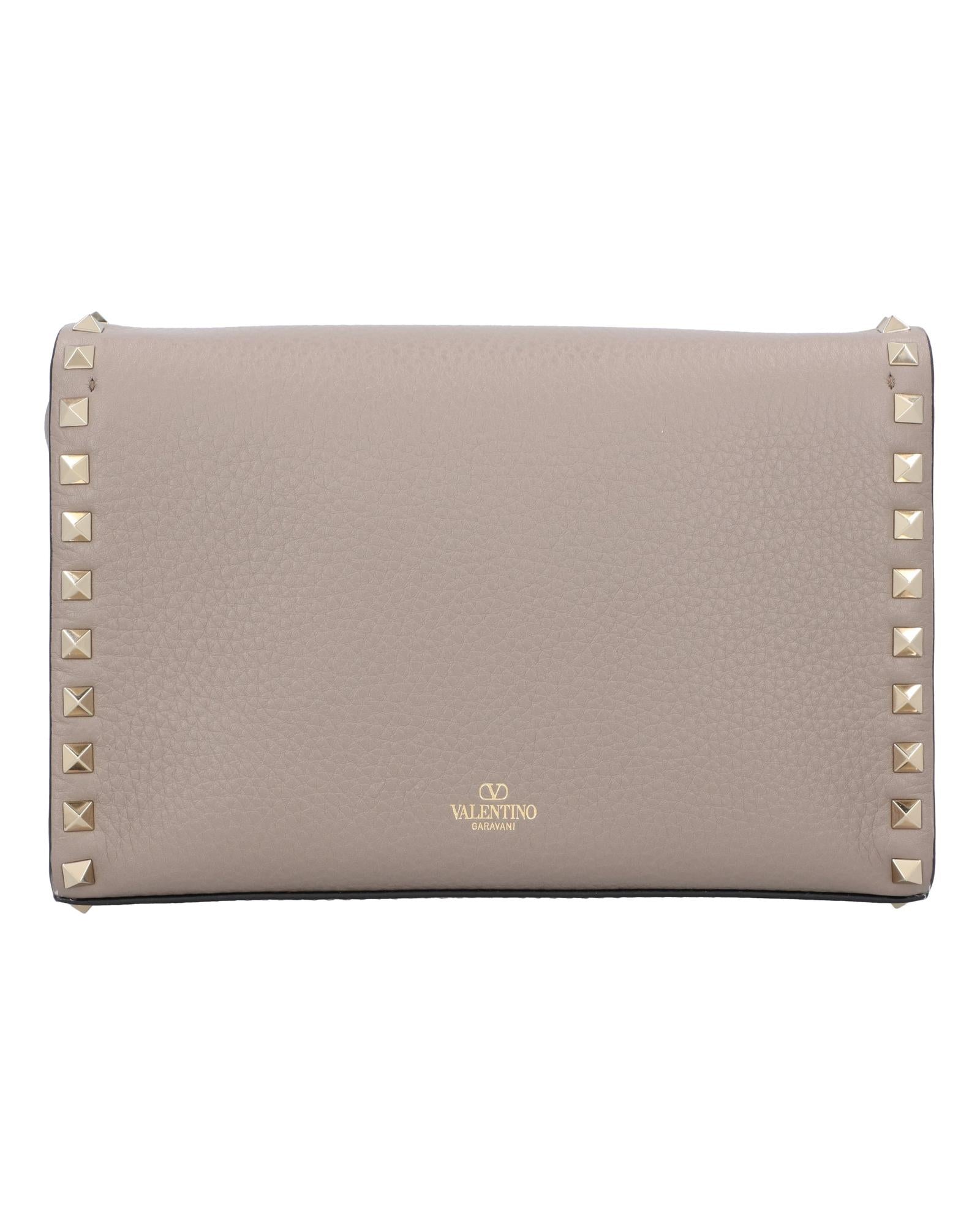 This Valentino Garavani Rockstud shoulder bag is crafted from luxurious grained leather and features the brand signature Rockstud embellishments The bag offers a classic design with an adjustable shoulder strap and multiple compartments for convenient organization Perfect for everyday use or a special occasion this timeless accessory adds a touch of sophistication to any look. Valentino Garavani Rockstud Spike Crossbody Bag Crafted from taupe grained calfskin leather Fold over top with twist lock closure Adjustable and detachable shoulder strap Platinum tone pyramid studs One main compartment Internal flat pocket Made in Italy . Animal skin | Calfskin