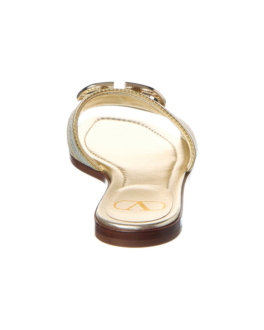 - Vlogo Leather Sandal In Gold And Silver Leather And Gold-Tone Hardware With Vlogo Accent