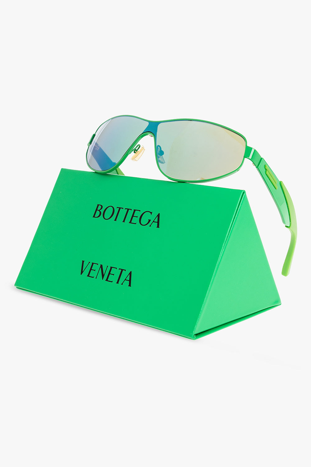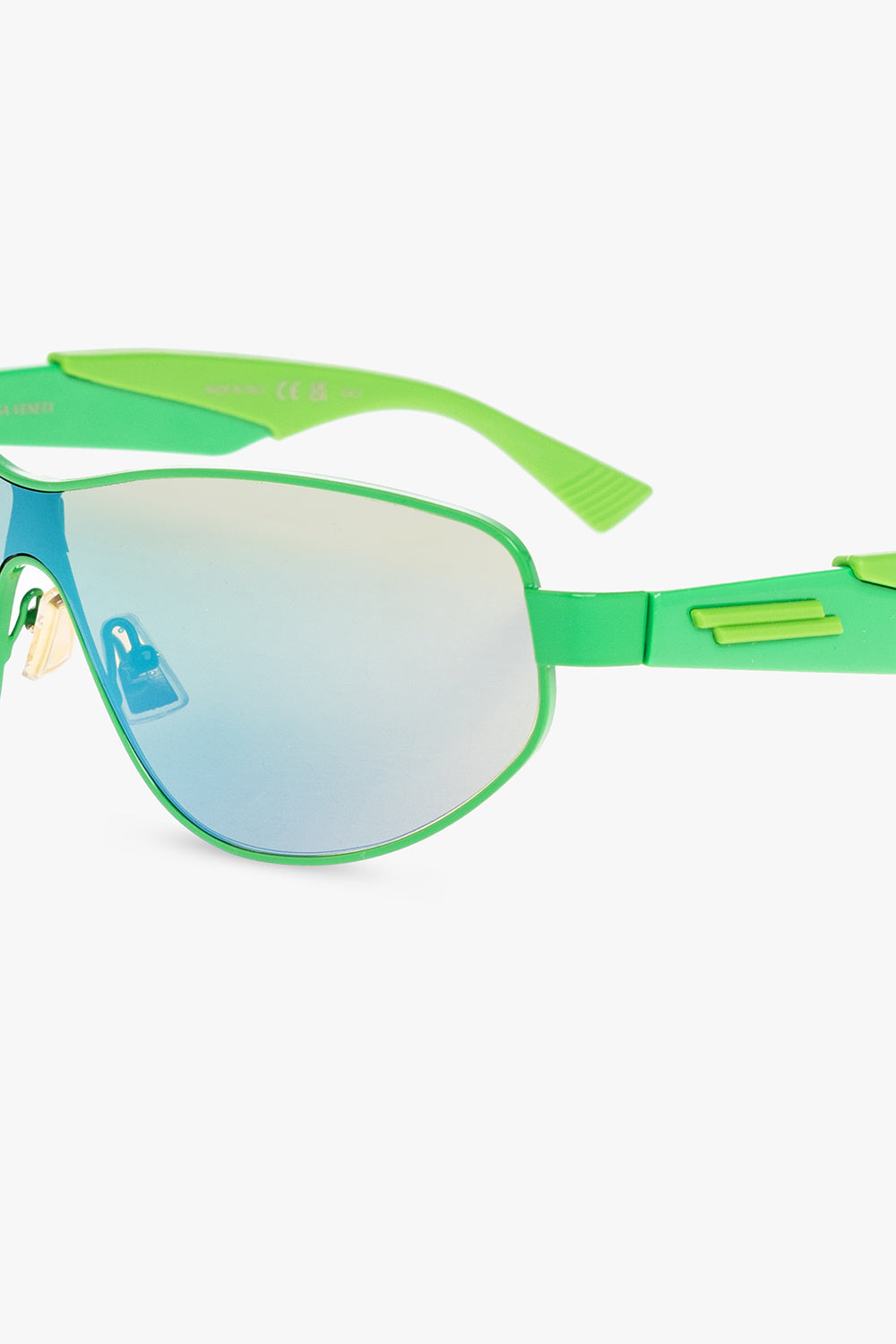 Green sunglasses from Bottega Veneta. With thin, slightly elongatedmetal frames, this model features temples accentuated with the brand'ssignature appliqués and rubber tips, integrated bridge and movablenose pads with silicone overlays, and green polarized lenses with 100%UV protection. Case included.