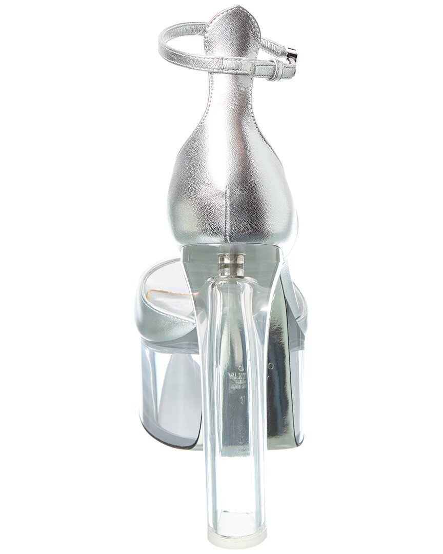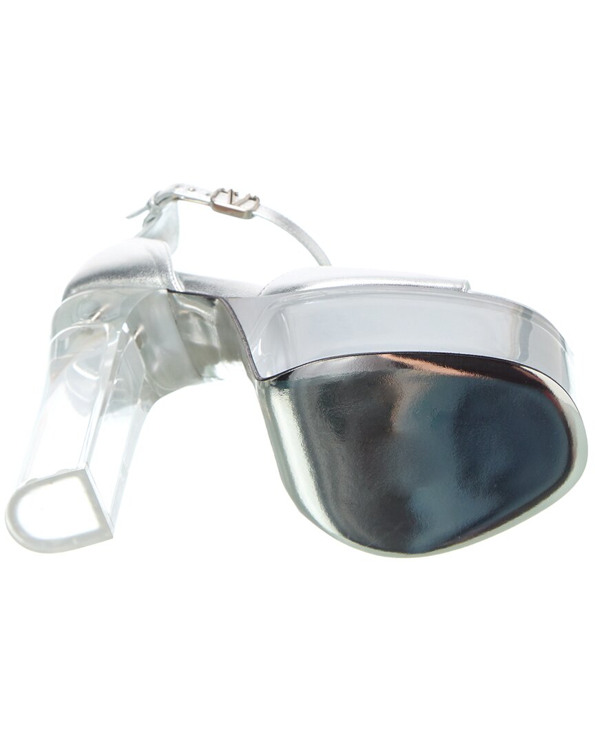 - Vlogo 155 Leather Platform Sandal In Silver Leather And Tonal Hardware With Vlogo Accent And Transparent Acrylic Heel And Platform