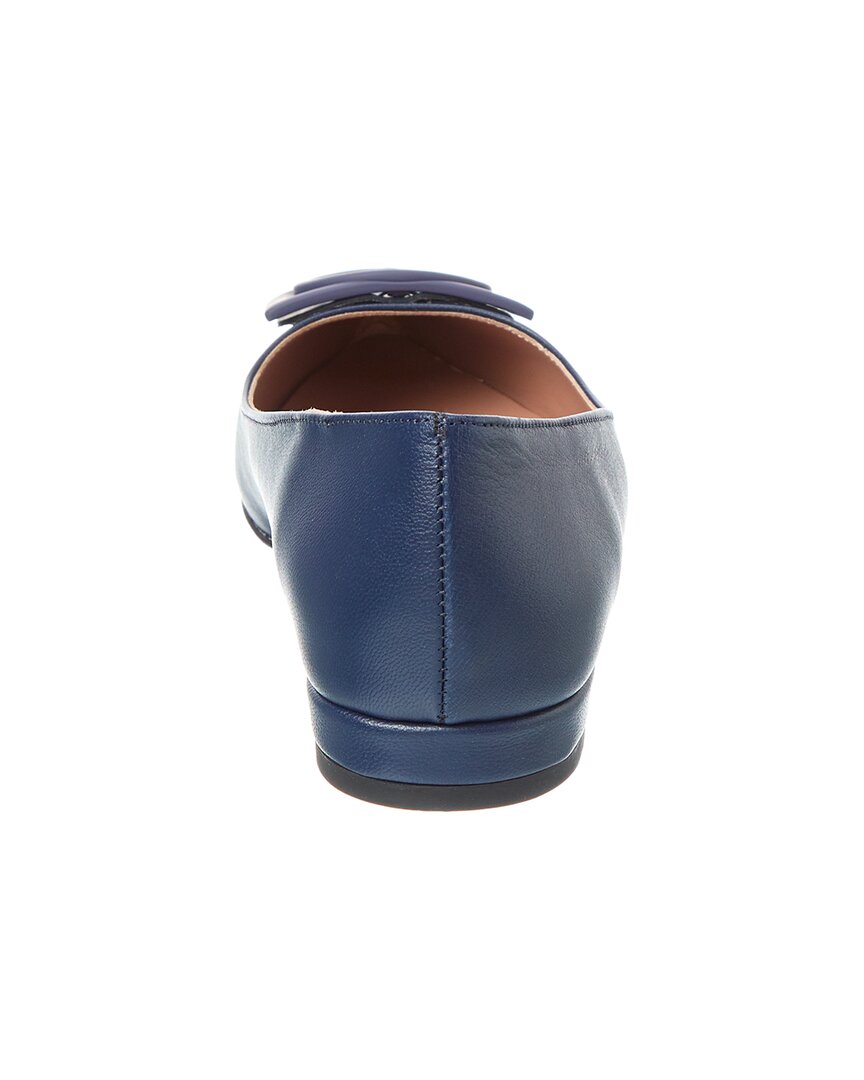 - Flora Leather Flat In Blue Leather And Gold-Tone Hardware With Logo Accent