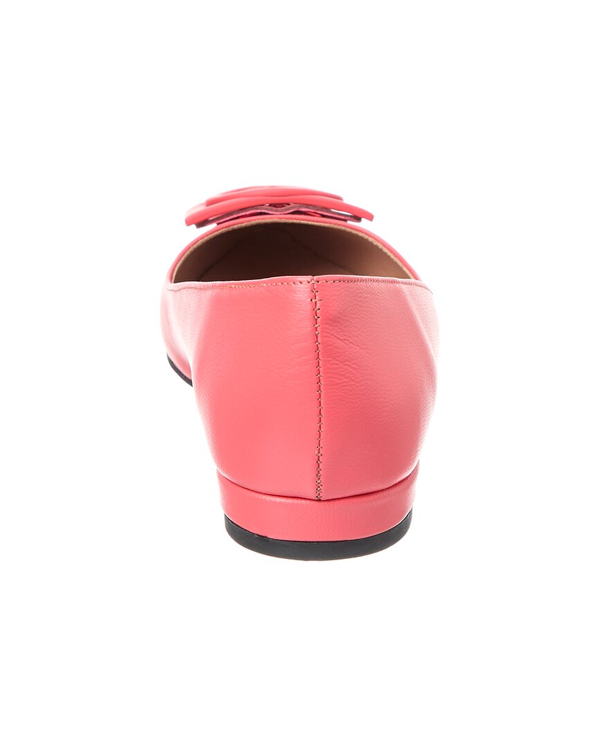 - Flora Leather Flat In Coral Leather And Gold-Tone Hardware With Logo Accent