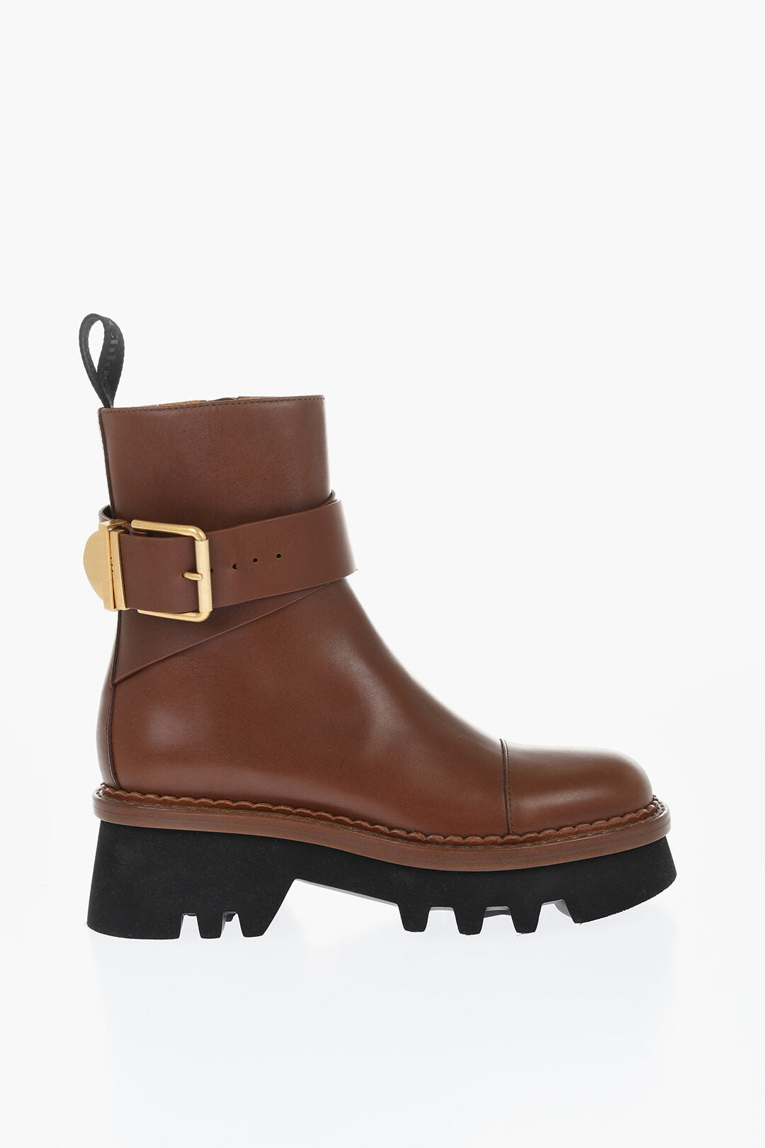 Chloe Leather Boots With Buckle Detail And Tank Sole