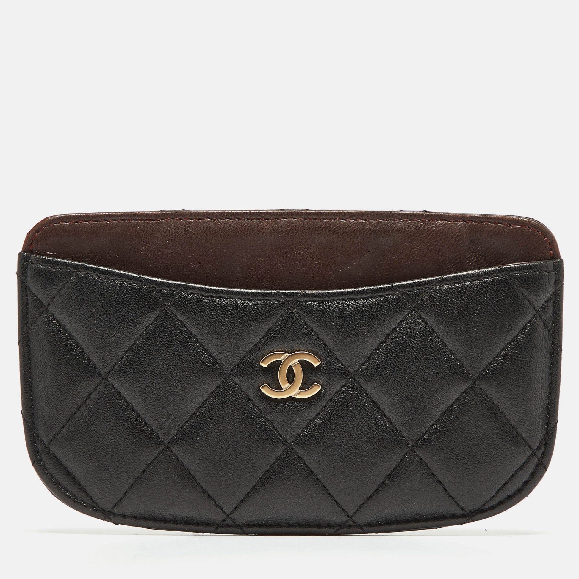 Chanel Black/Burgundy Quilted Leather CC Curved Card Holder