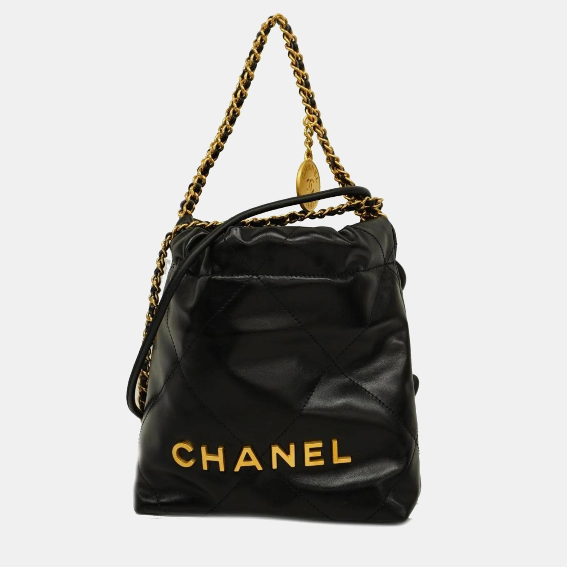 Chanel Black Lambskin Leather Mini 22 Hobos