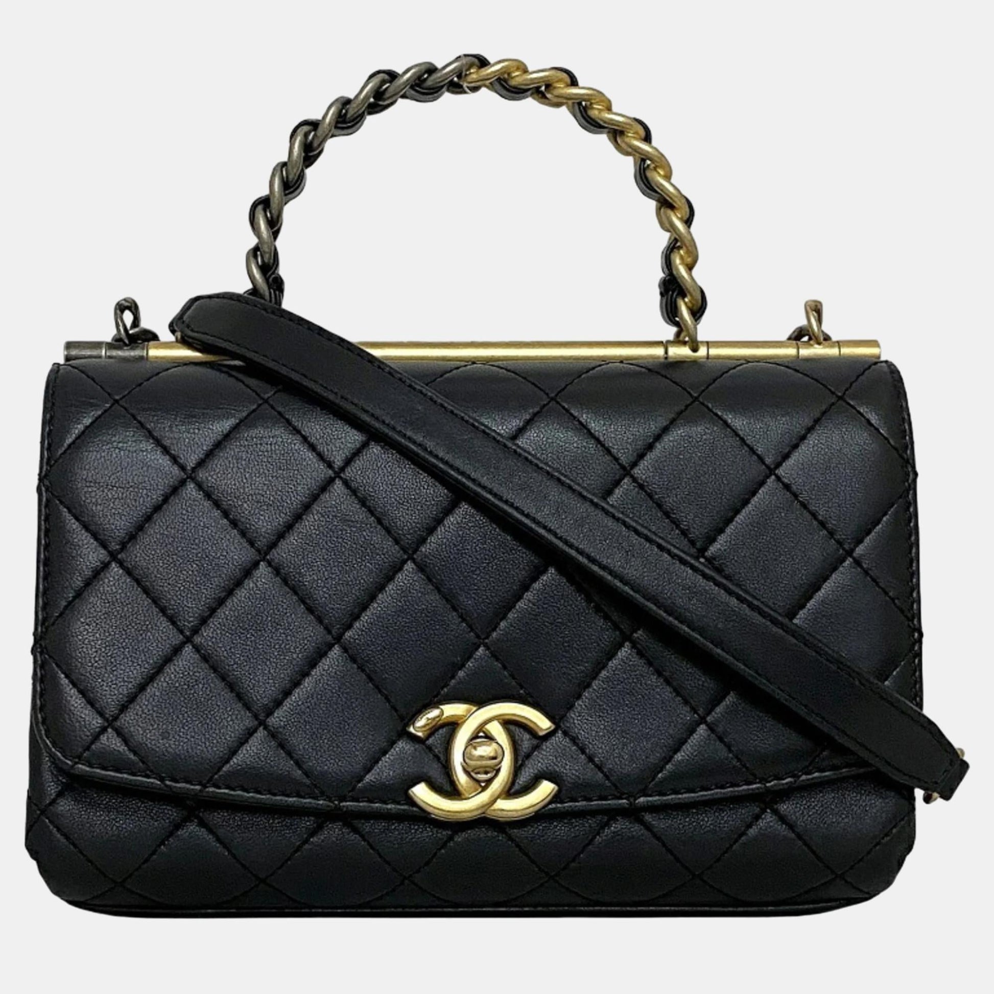 Discover the Chanel Black Quilted Lambskin Leather Small Classic Top Handle Flap Bag, a quintessential piece in designer luxury handbags. Crafted from premium lambskin, this iconic bag combines elegance and practicality for everyday use or special occasions. Its timeless design features a sophisticated top handle and signature Chanel detailing, ensuring it stands out in any collection. For those looking to buy luxury handbags online, our price comparison platform helps you find the best deals without compromising quality. Trust in Chanel's esteemed reputation, and rely on our trusted information to make an informed purchase that enhances your style and investment.