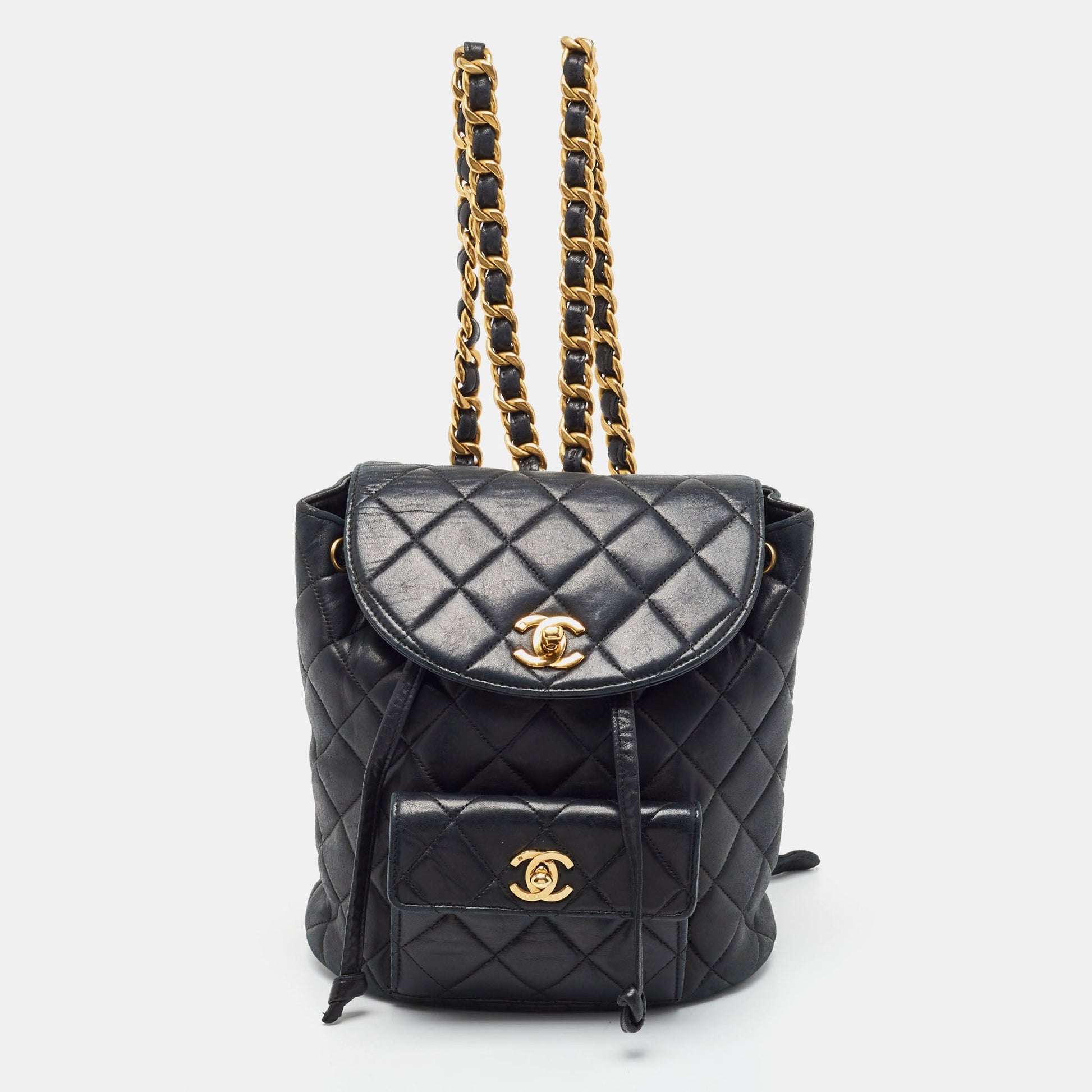 Chanel Black Quilted Leather Vintage Duma Backpack