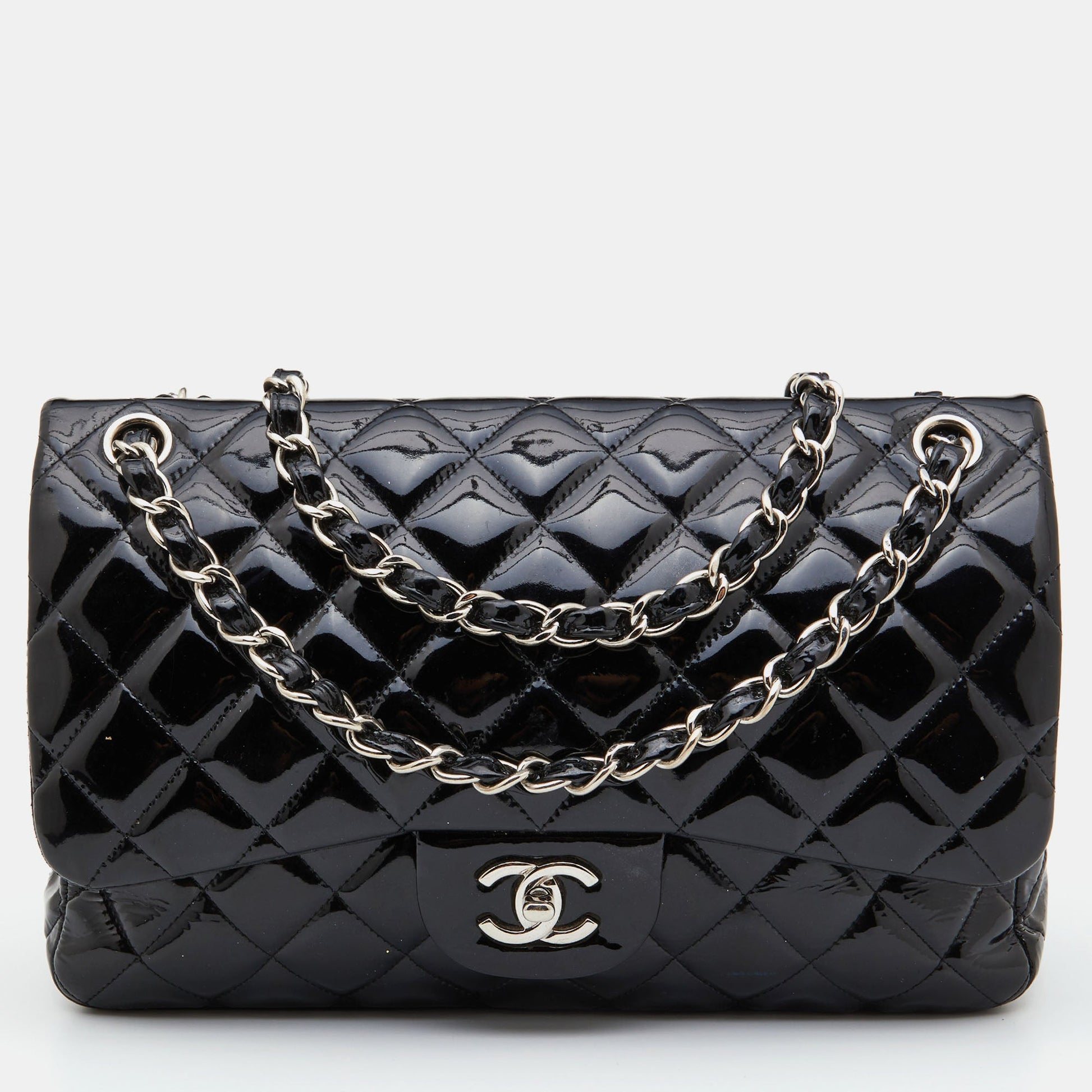 Discover the iconic Chanel Black Quilted Patent Leather Jumbo Classic Double Flap Bag, a must-have in designer luxury handbags. Crafted from premium patent leather, this timeless piece combines elegance with practicality, featuring a spacious interior and signature double flap design. When you want to buy luxury handbags online, our price comparison platform ensures you find the best deals without compromising on quality. Trust in Chanel's renowned reputation for craftsmanship and style, and rely on our expert insights to make informed decisions. Elevate your accessory game with this exquisite bag while saving money through smart shopping.