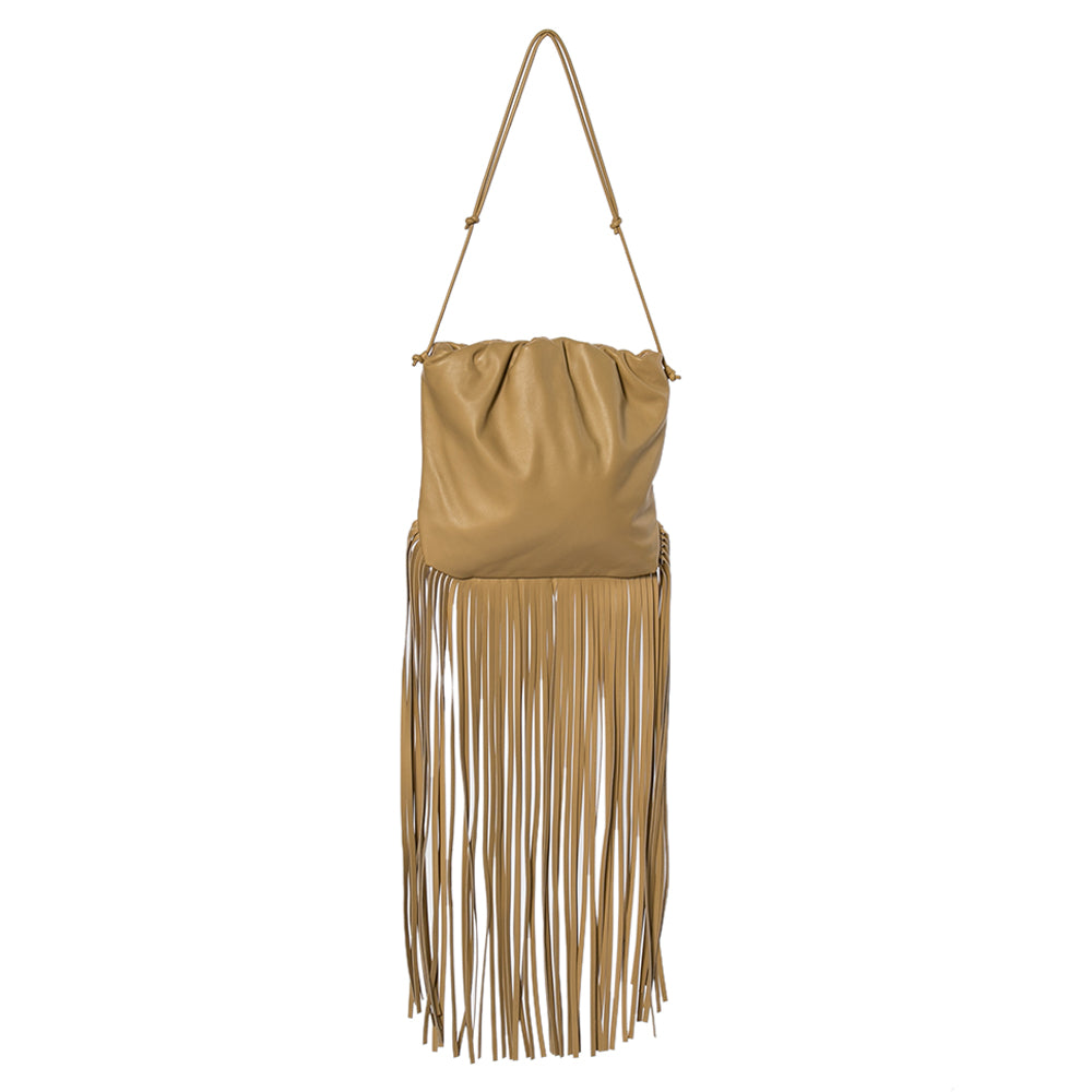 Bottega Veneta Beige Leather Fringe Pouch Hobo