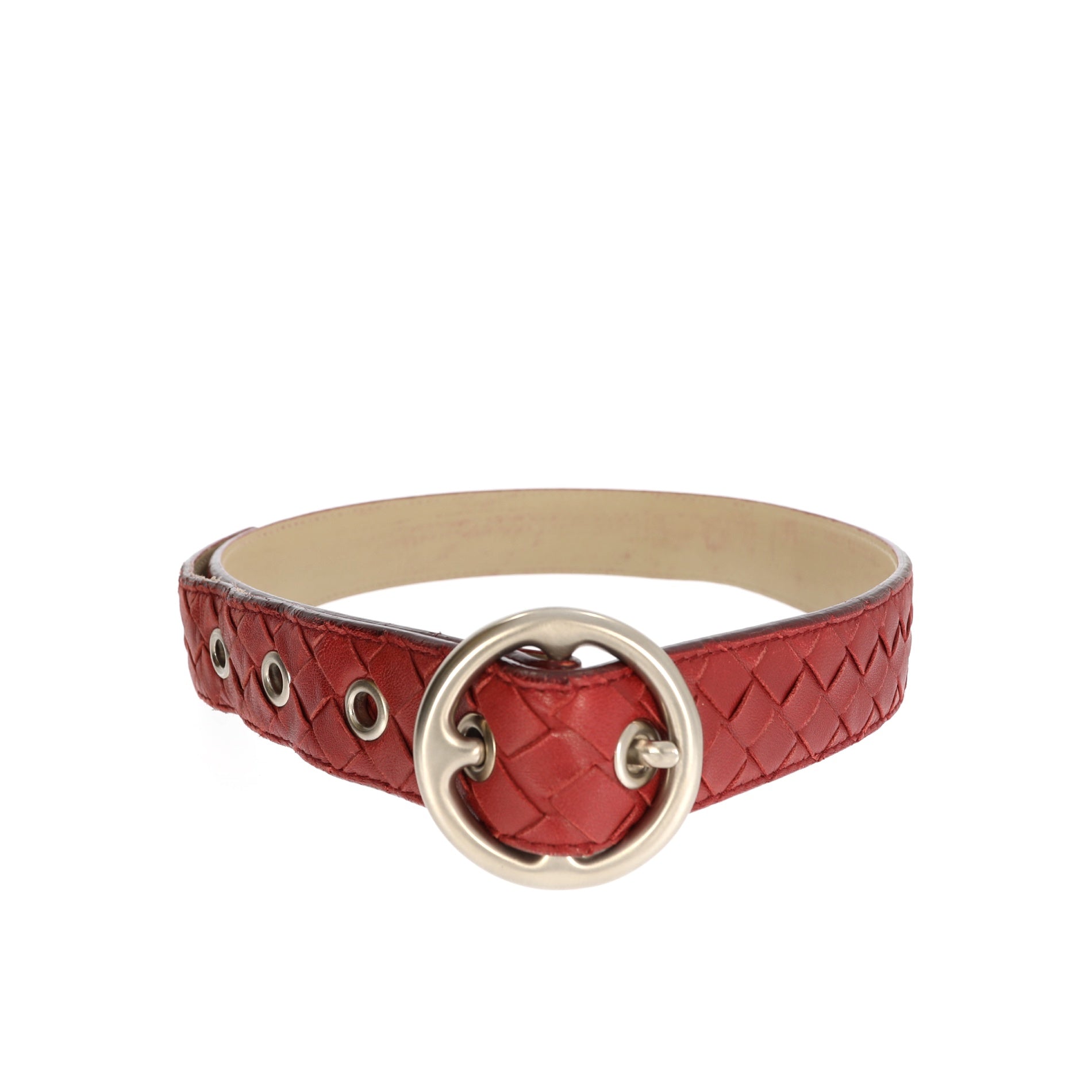 This lovely belt is crafted of "Intrecciato" leather in red Bordeaux color