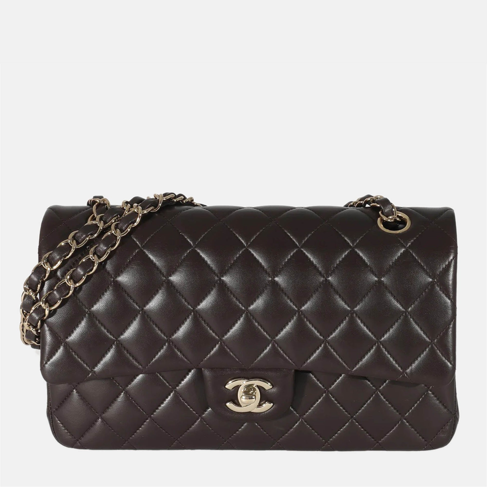 Chanel Brown Lambskin Leather Medium Classic Double Flap Shoulder Bag