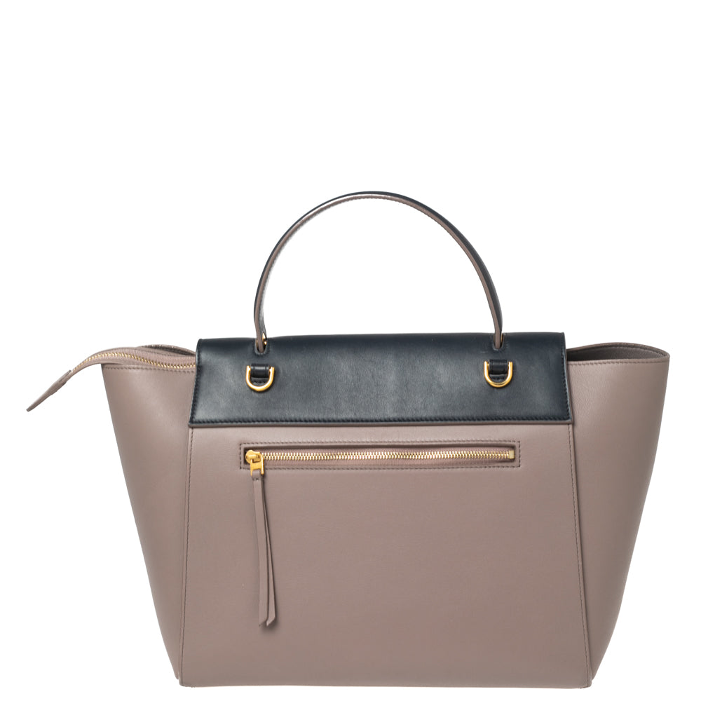 Celine Beige/Navy Blue Leather Mini Belt Top Handle Bag