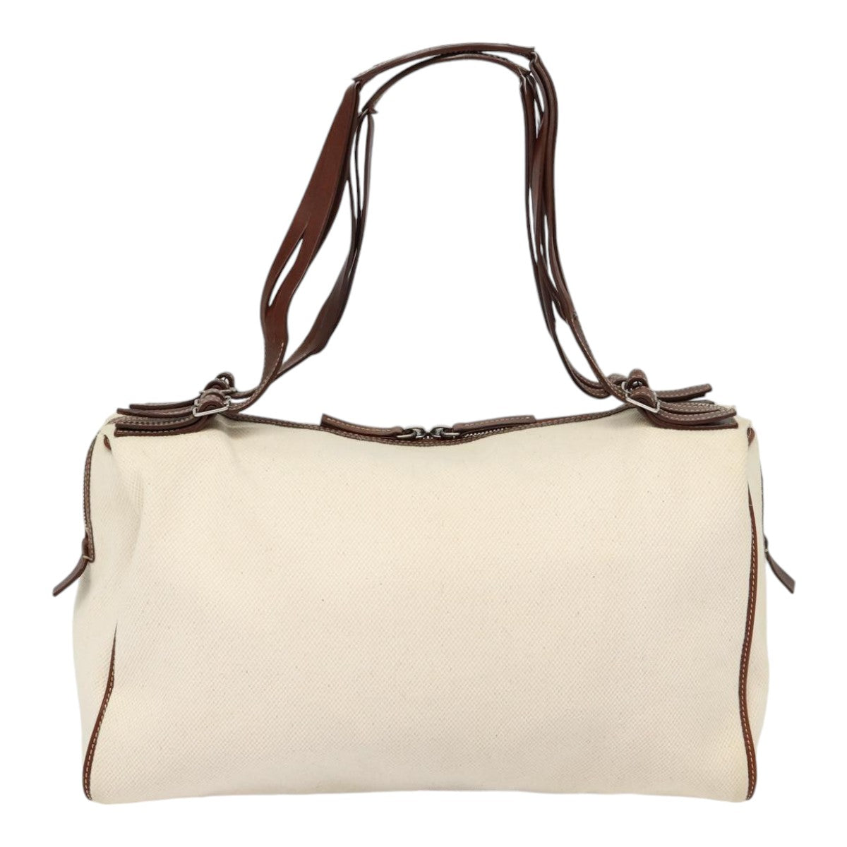 CELINE Boston Bag Canvas White Silver Auth 88479