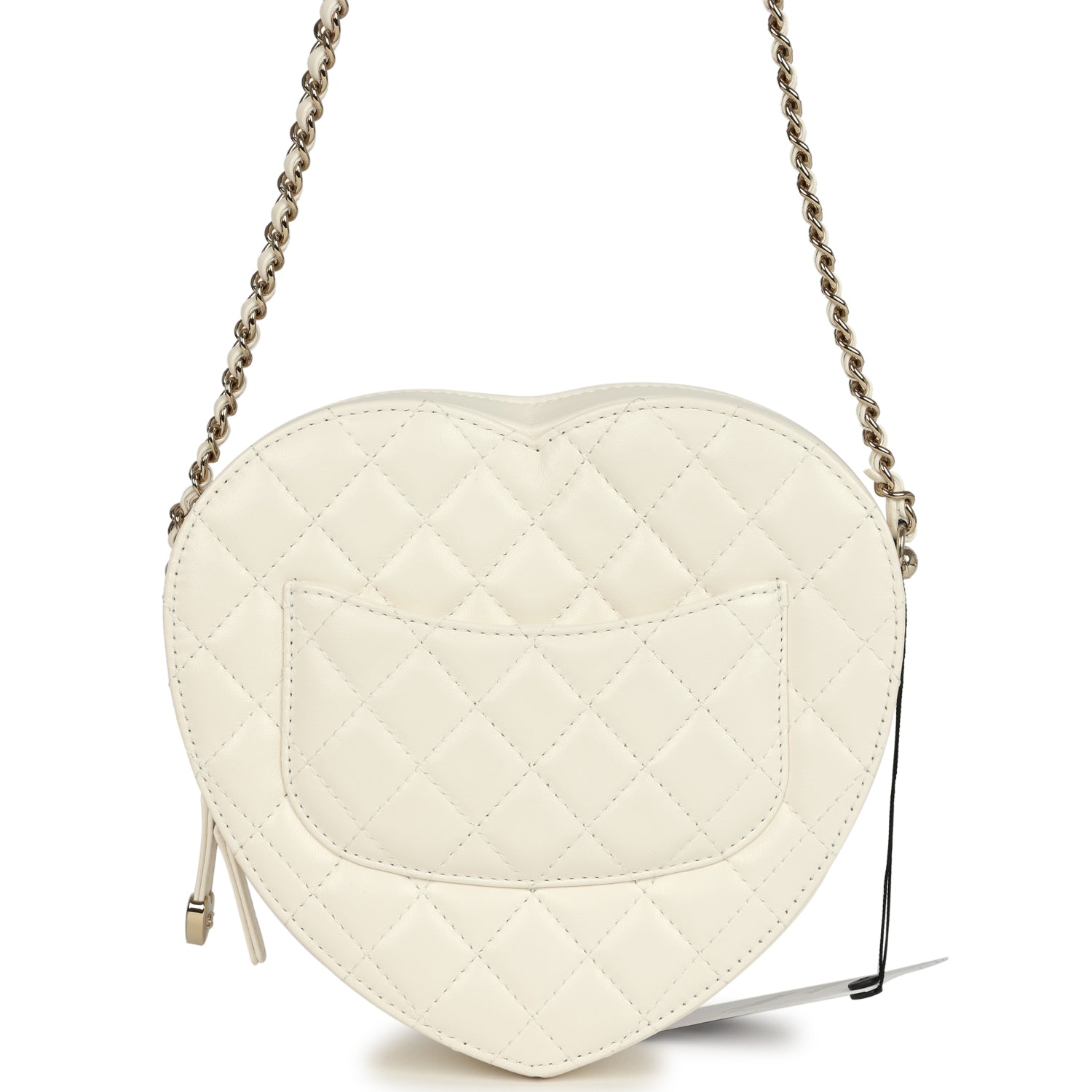 Chanel CC In Love Large Heart Bag with Chain White Lambskin Light Gold Hardware
