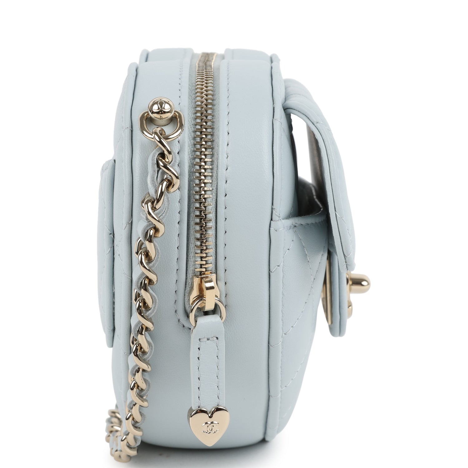Chanel CC In Love Small Heart Bag with Chain Light Blue Lambskin Light Gold Hardware