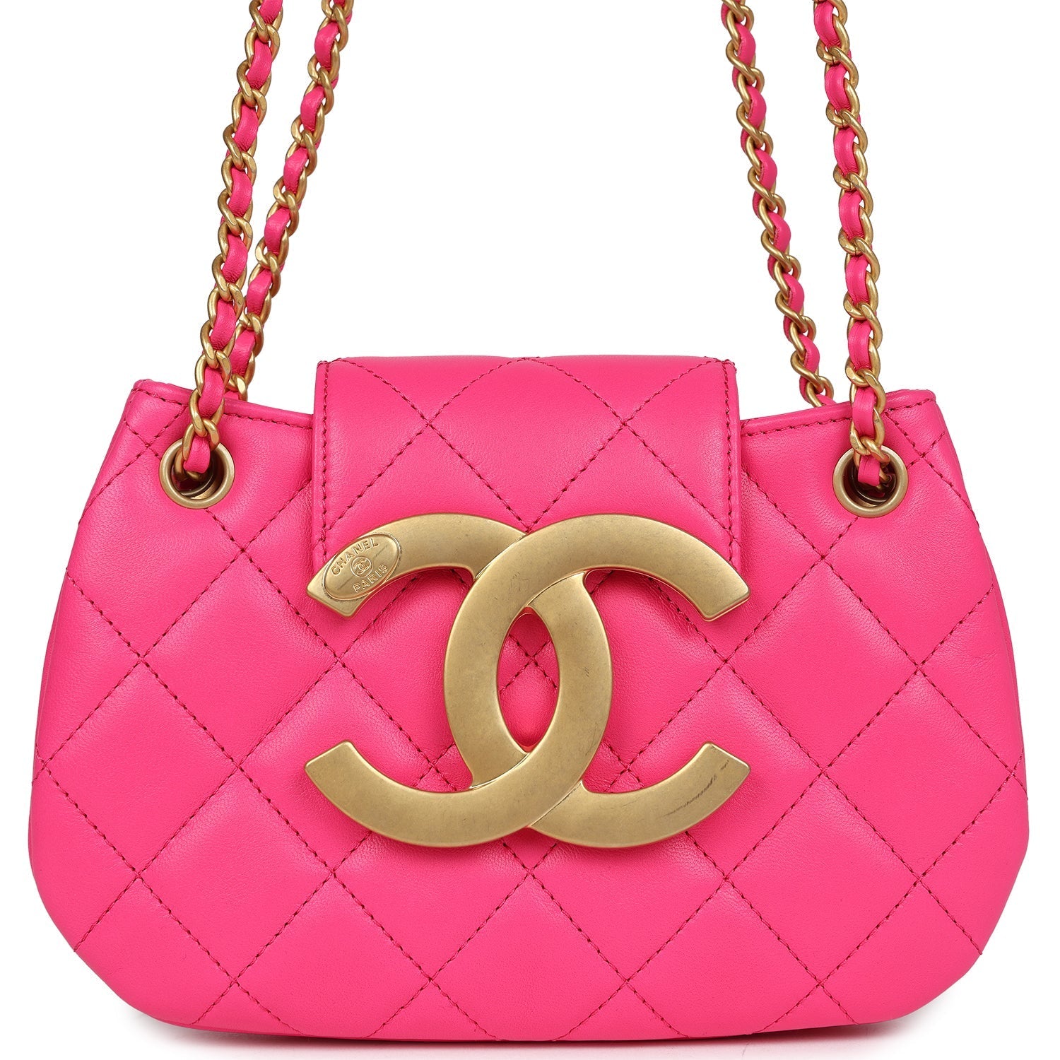 Chanel CC Mini Shoulder Bag Fuchsia Lambskin Antique Gold Hardware