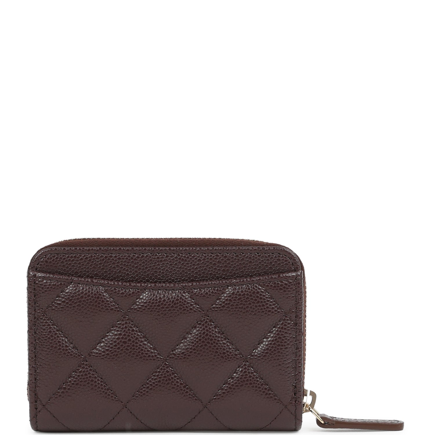 Chanel Classic Zipped Coin Purse Wallet Dark Brown Shiny Caviar Light Gold Hardware