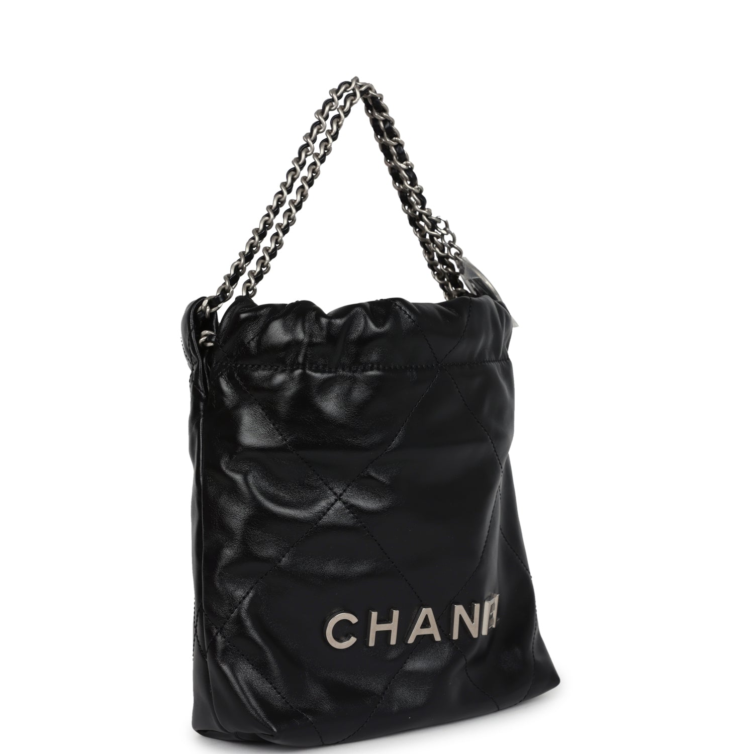Chanel Mini 22 Bag Black Shiny Calfskin Brushed Silver Hardware