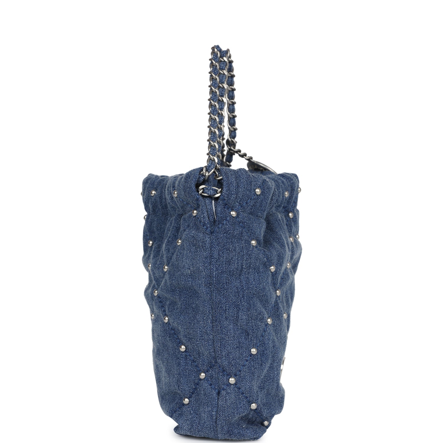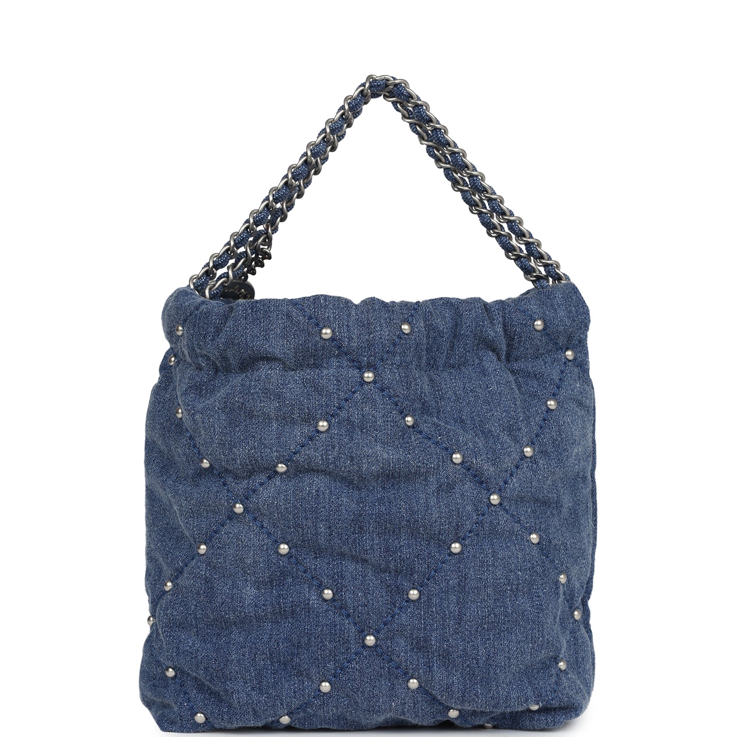 Chanel Mini 22 Bag Blue Studded Denim Silver Hardware