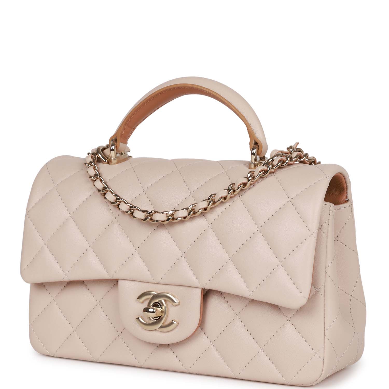 Chanel Mini Flap with Top Handle Beige and Caramel Lambskin Light Gold Hardware