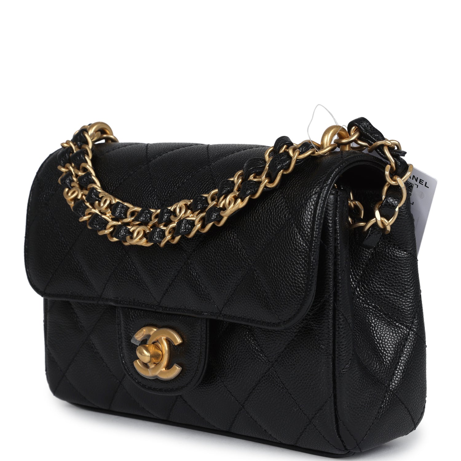 Chanel Mini Top Handle Flap Bag Black Grained Calfskin Brushed Gold Hardware
