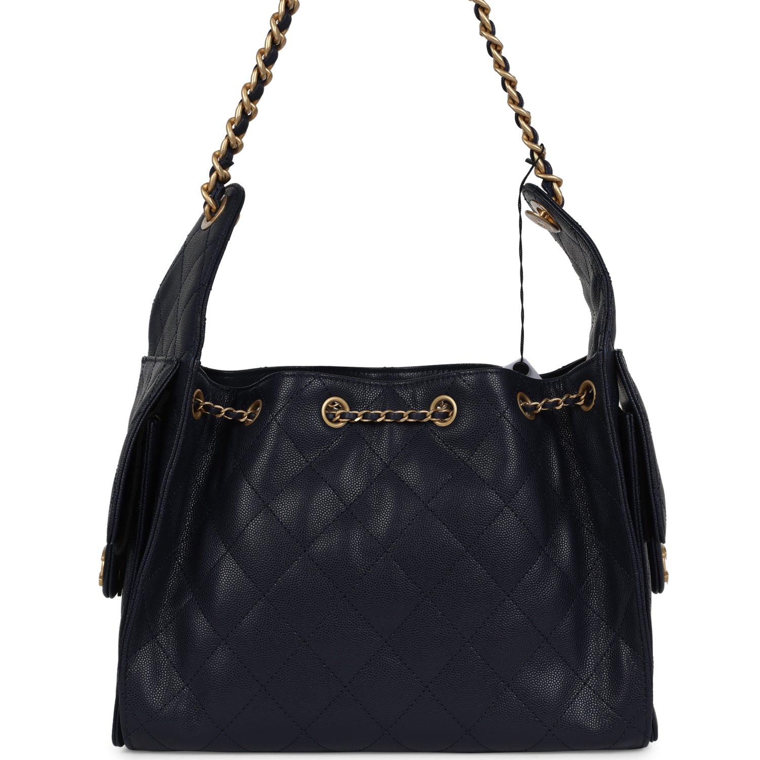 Chanel Small 25 Hobo Bag Dark Navy Caviar Antique Gold Hardware