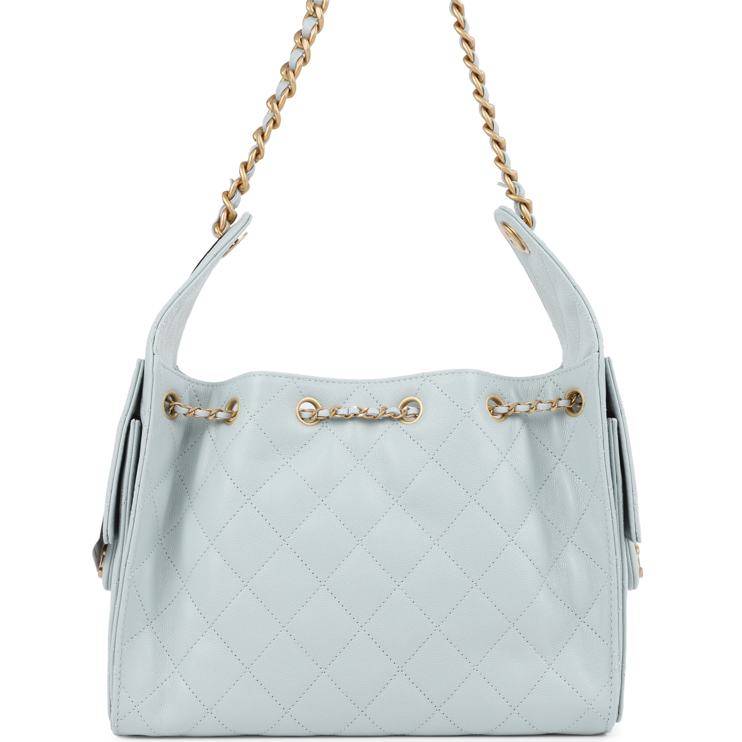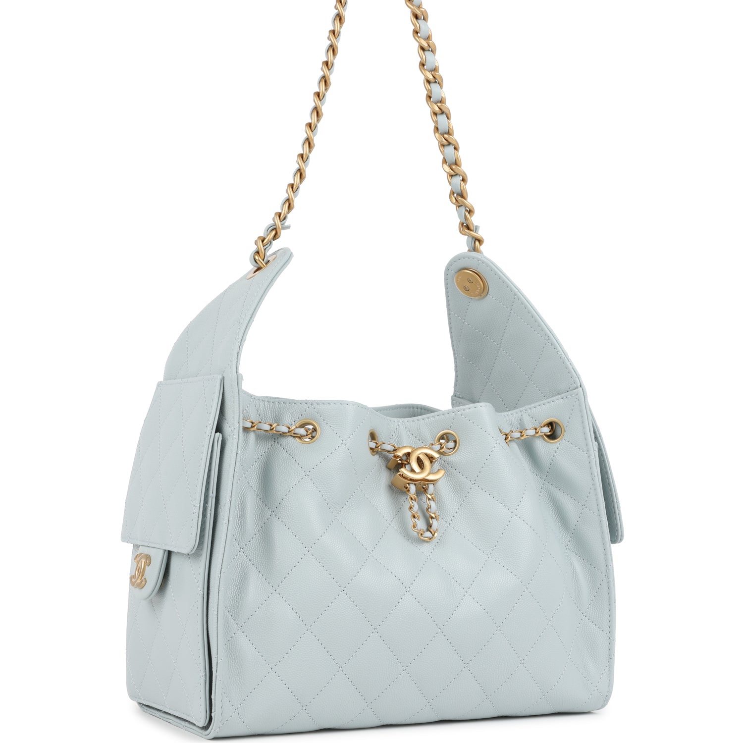 Chanel Small 25 Hobo Bag Light Blue Caviar Antique Gold Hardware