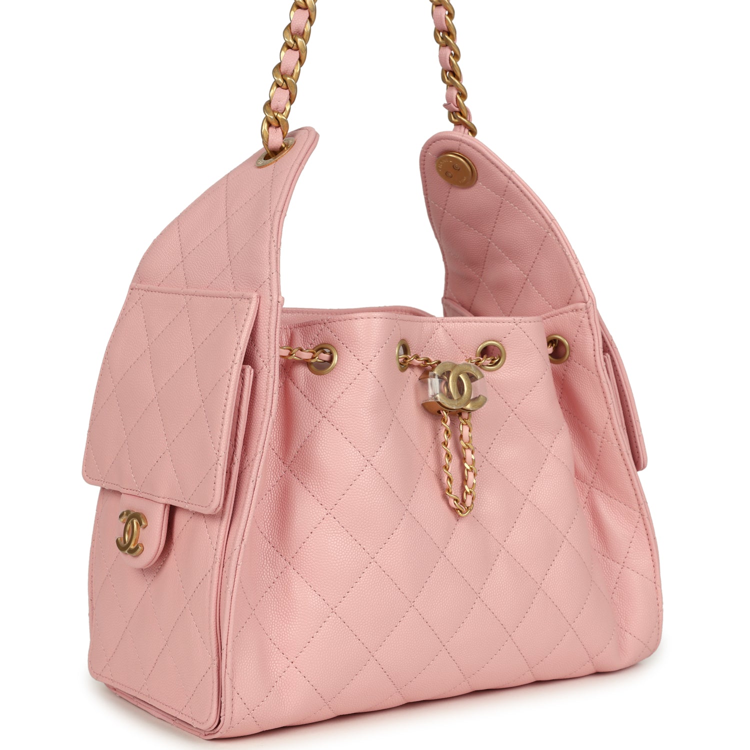 Chanel Small 25 Hobo Bag Light Pink Caviar Antique Gold Hardware