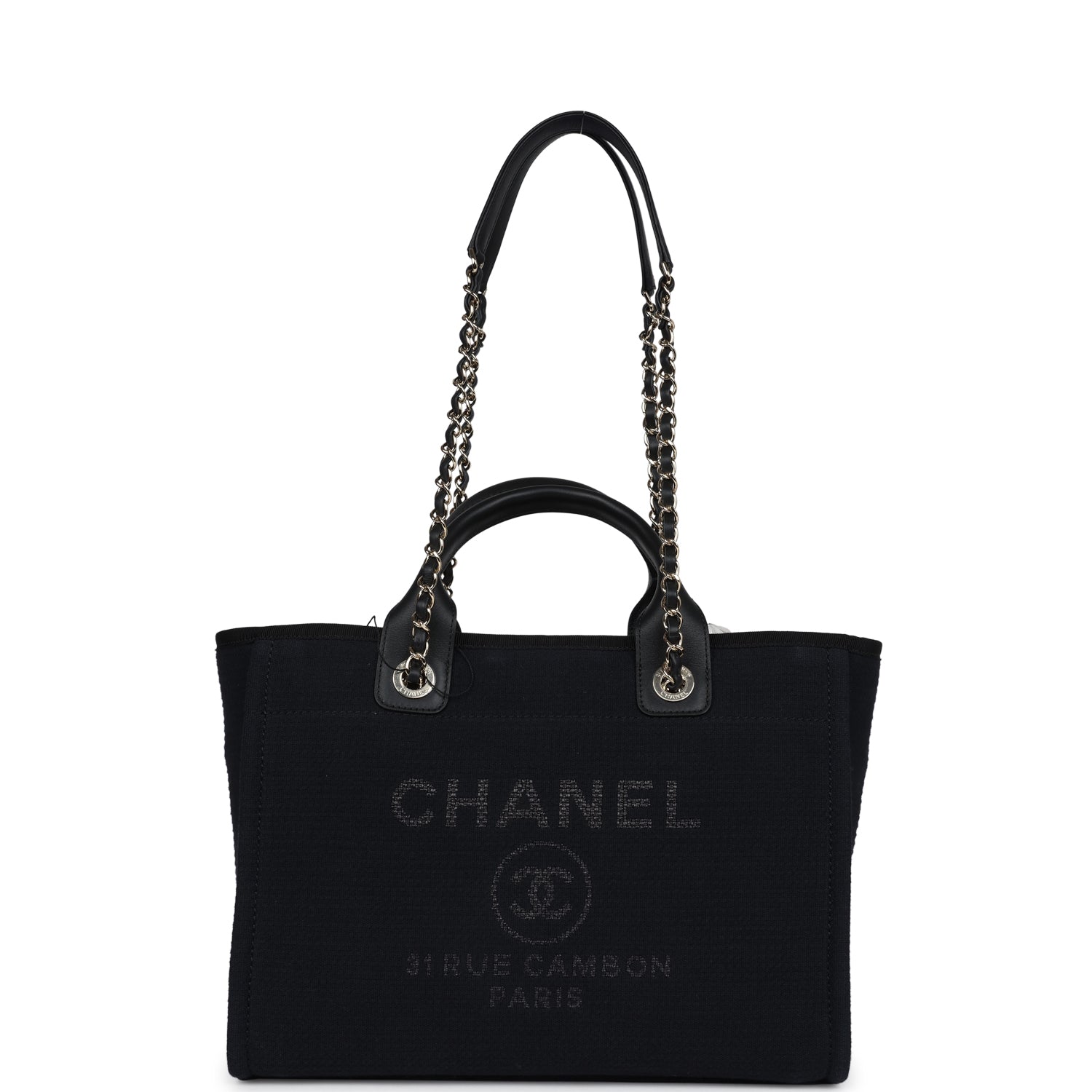 Chanel Small Deauville Shopping Tote Black Canvas Light Gold Hardware