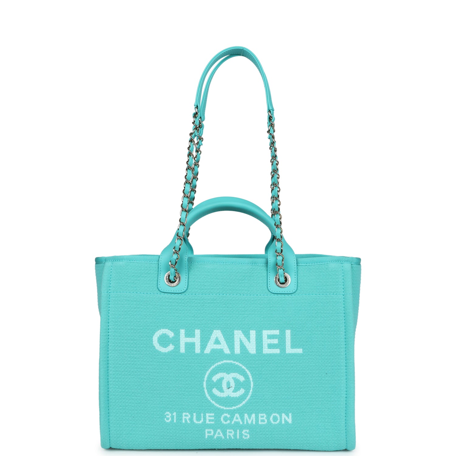 Chanel Small Deauville Shopping Tote Turquoise Canvas Light Gold Hardware