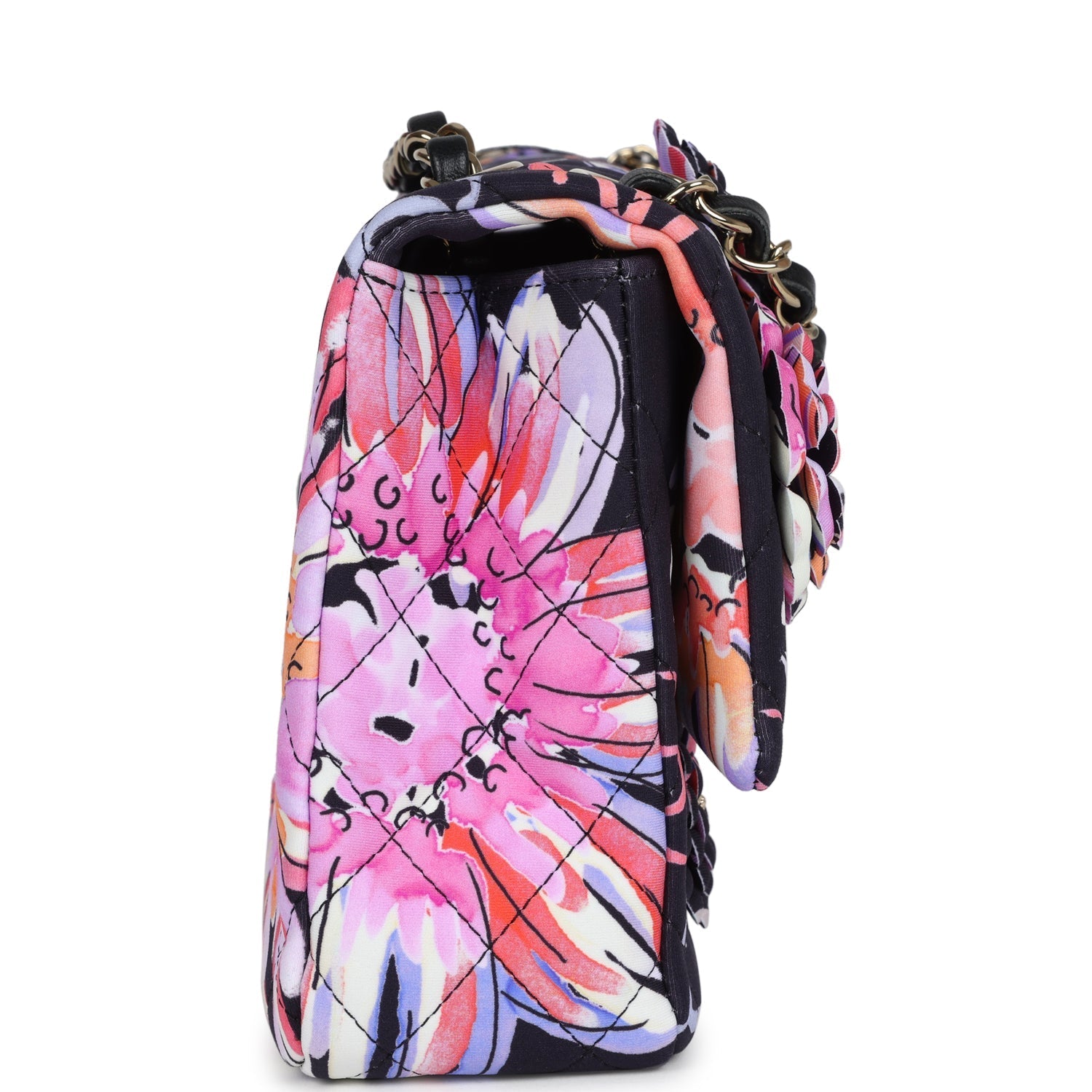 Chanel Small Flap Bag Black Multi Floral Fabric Light Gold Hardware