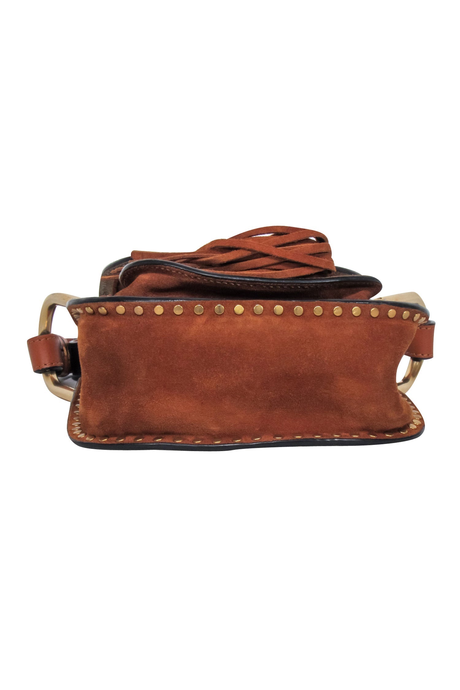 Rock on in style with this Italian-made Chloe tan suede crossbody bag! With its woven and fringe detail, this boho chic accessory is perfect for upgrading your floral maxi skirt or for taking to a festival concert, where it'll team up perfectly with bell-bottom jeans and a crop top. A must-have accessory for any occasion!