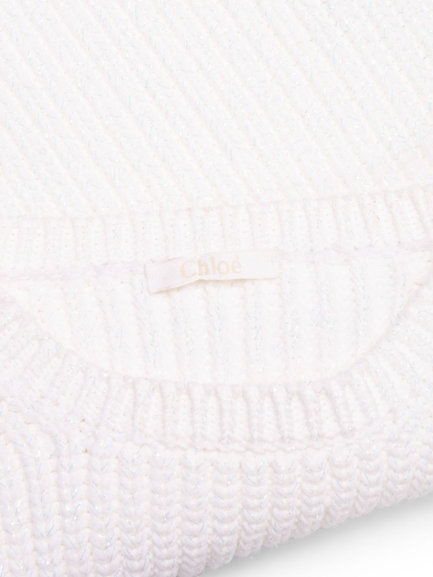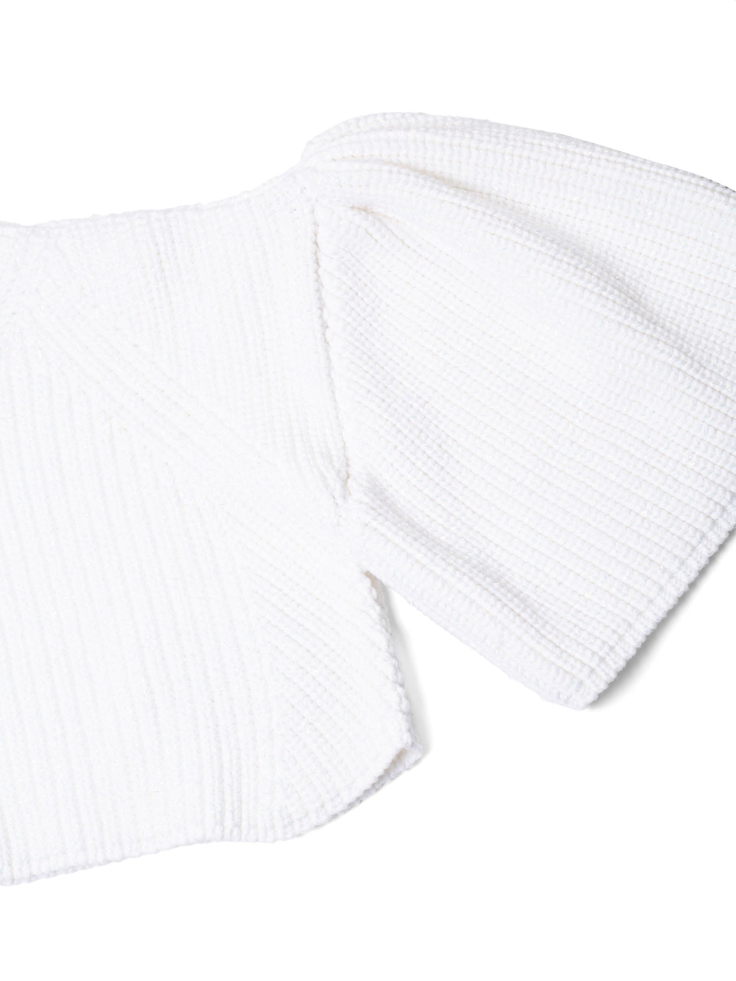 Chloe Cotton Balloon Sleeve Knitted Lurex Cropped Sweater White