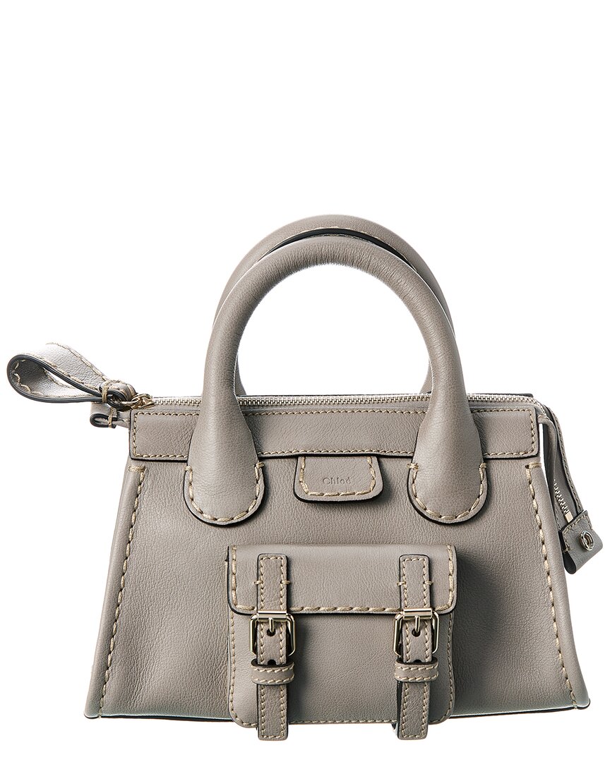 - Edith Mini Leather Satchel In Cashmere Taupe Leather With Gold-Tone Hardware And Exterior Pocket