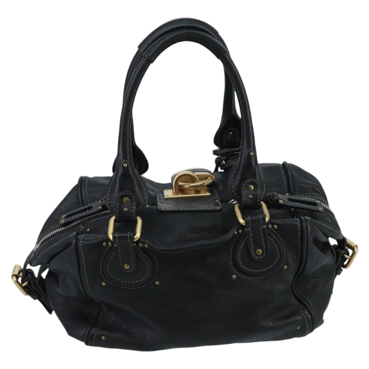 Chloe Paddington Hand Bag Leather Black Gold Silver am7153