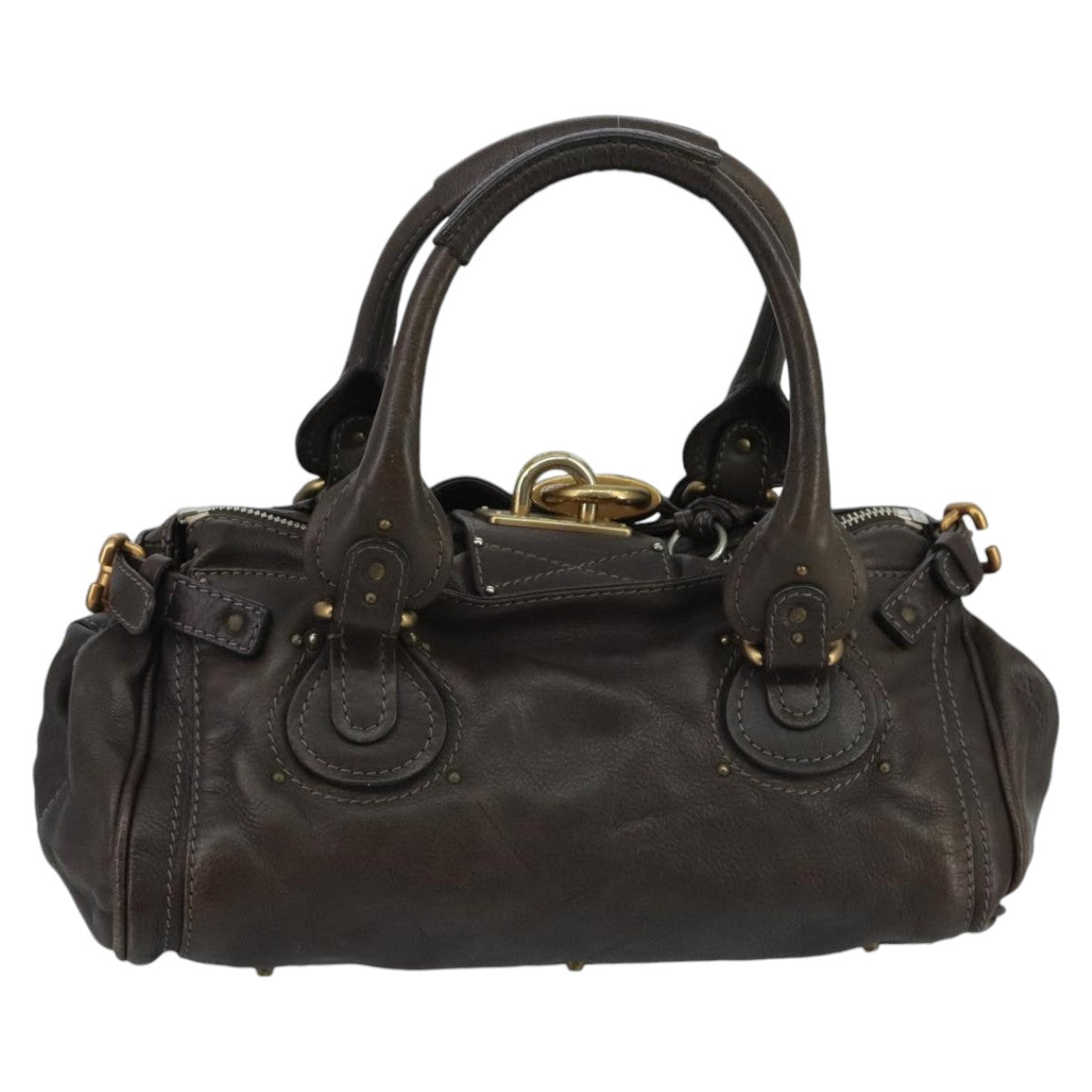 Chloe Paddington Hand Bag Leather Brown Gold Silver am7143