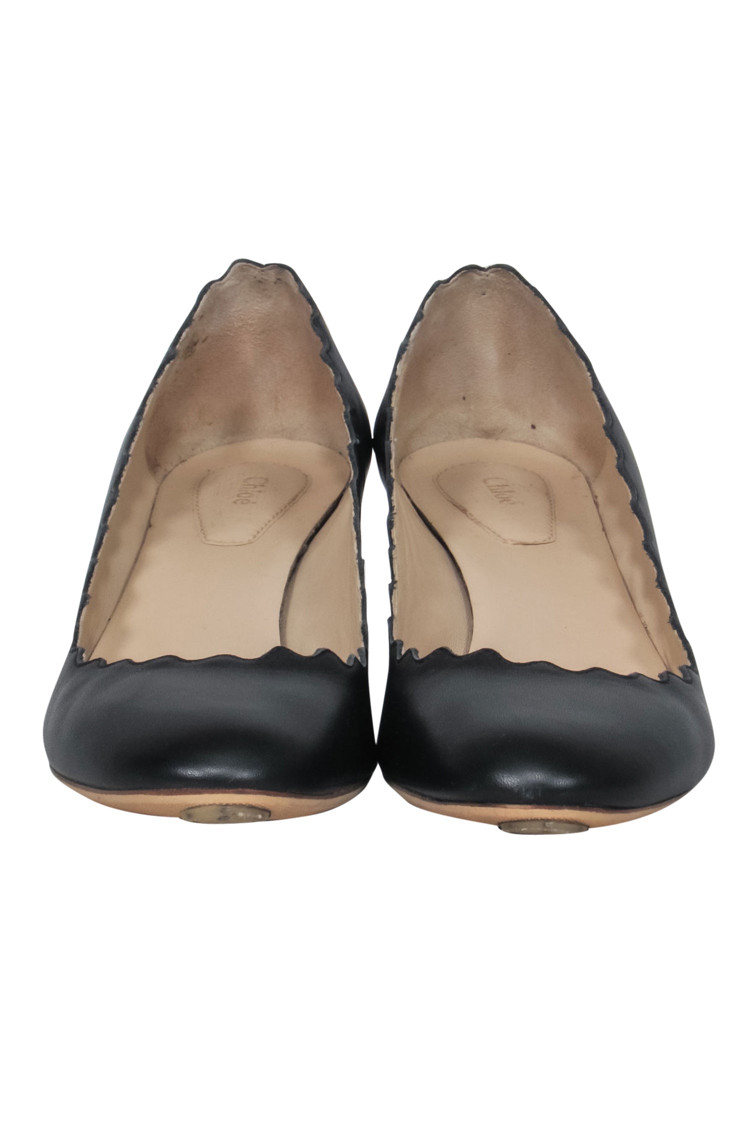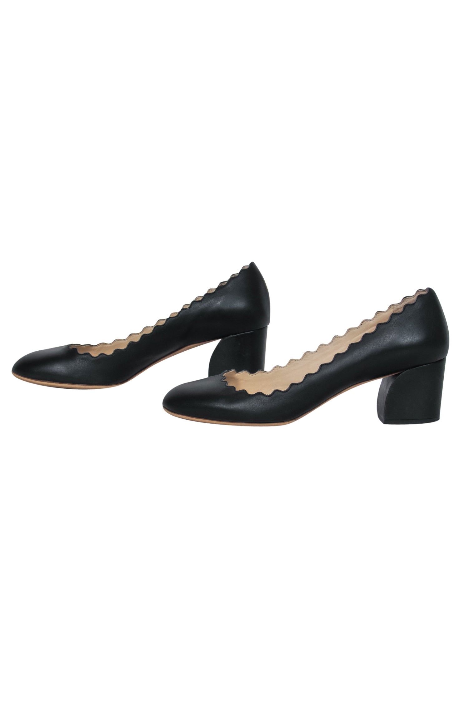 Chloe - Black Leather Scalloped Block Heel "Lauren" Pumps Sz 5.5