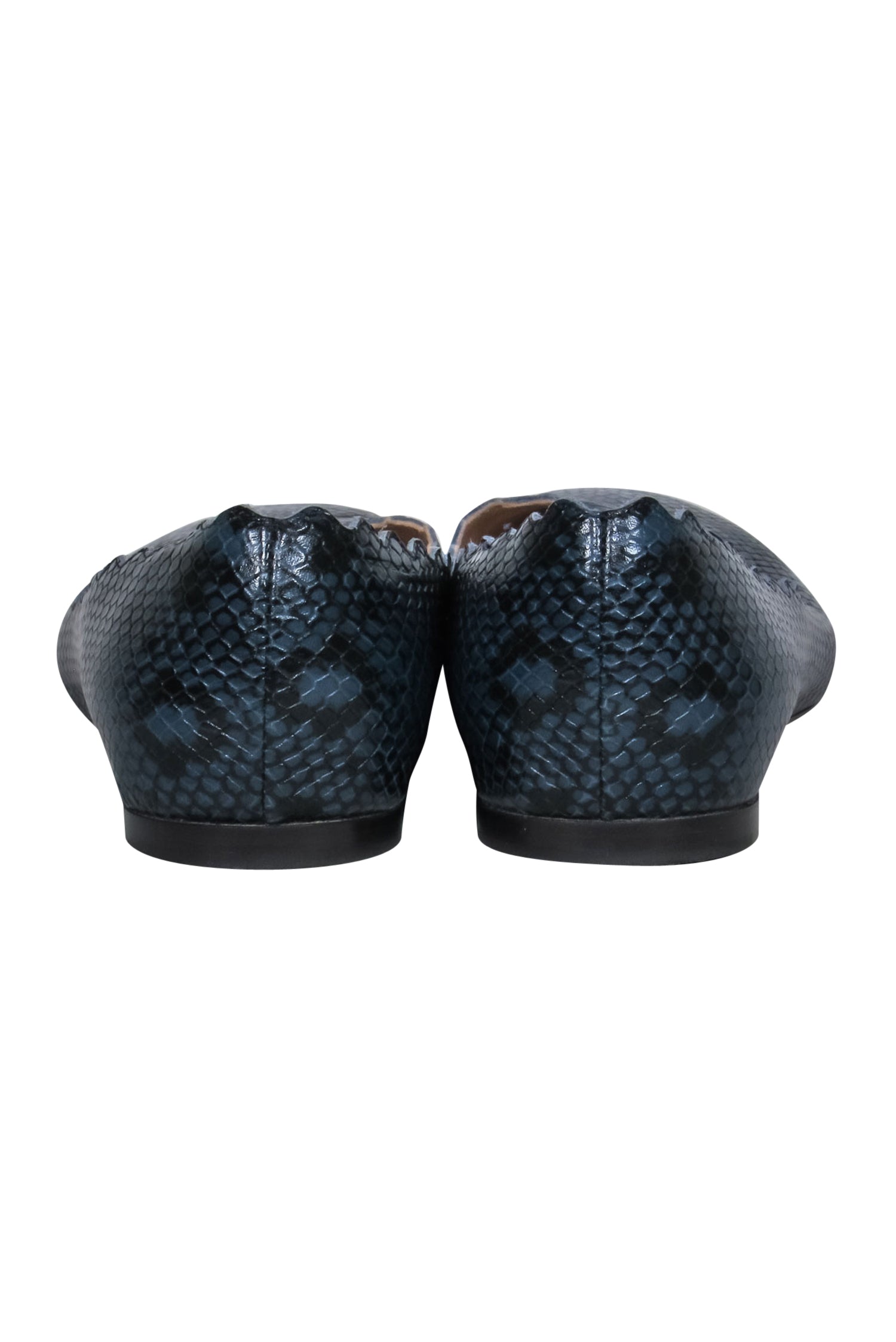 Chloe - Navy Snakeskin Print Textured Scalloped Flats Sz 9.5
