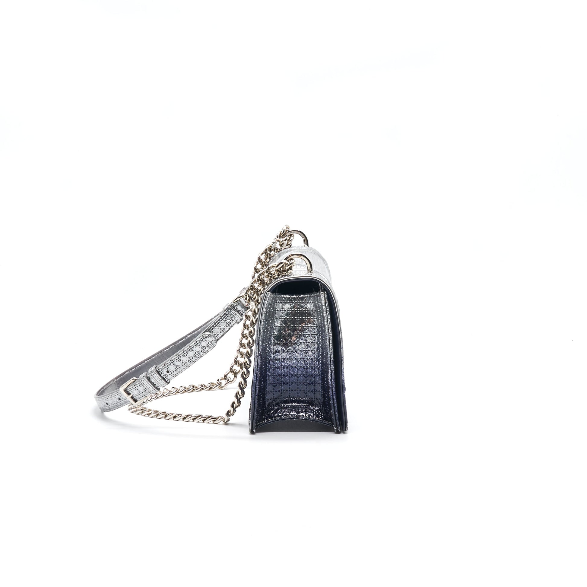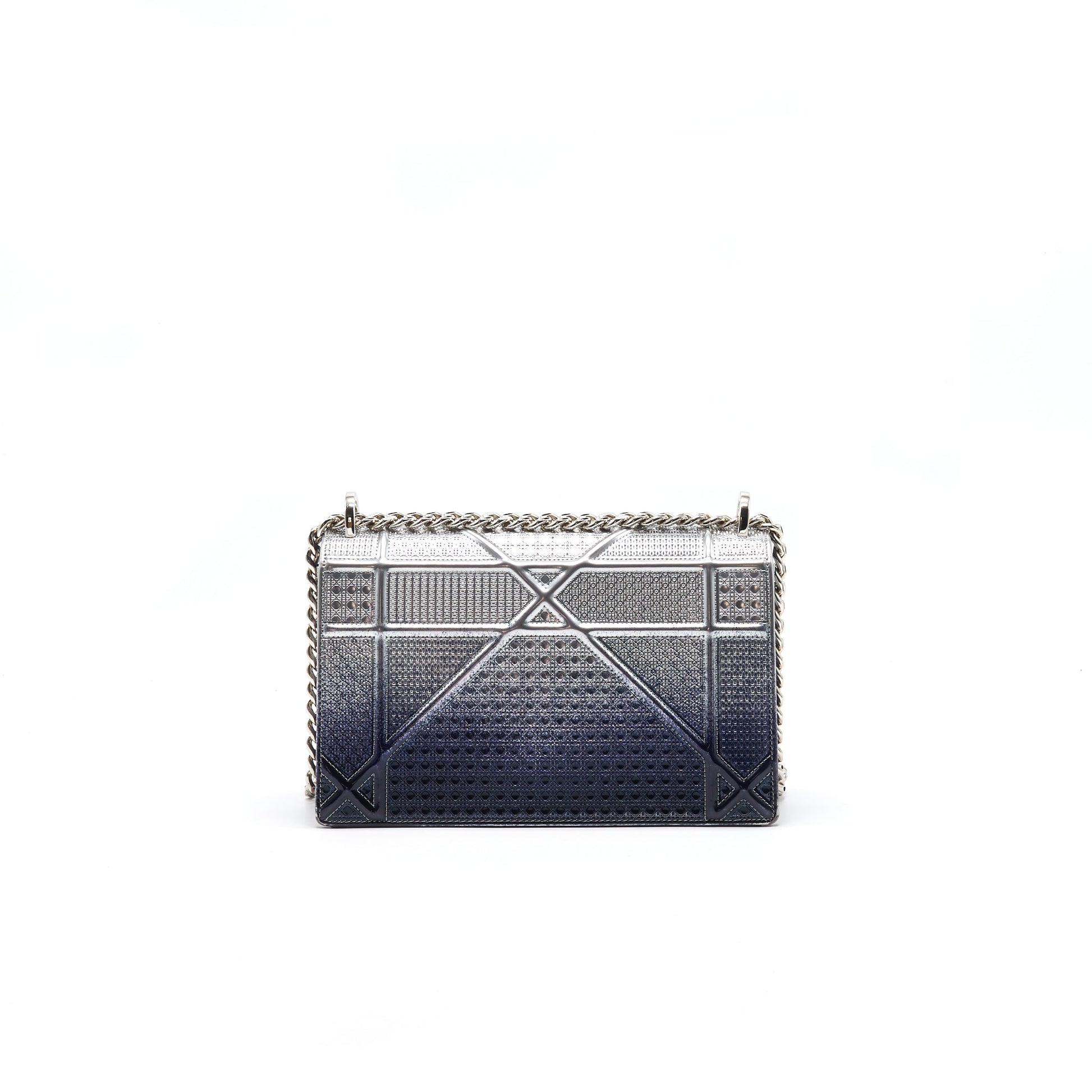 CHRISTIAN DIOR DIORAMA MEDIUM FLAP BAG METALLIC CALFSKIN SILVER AND NAVY