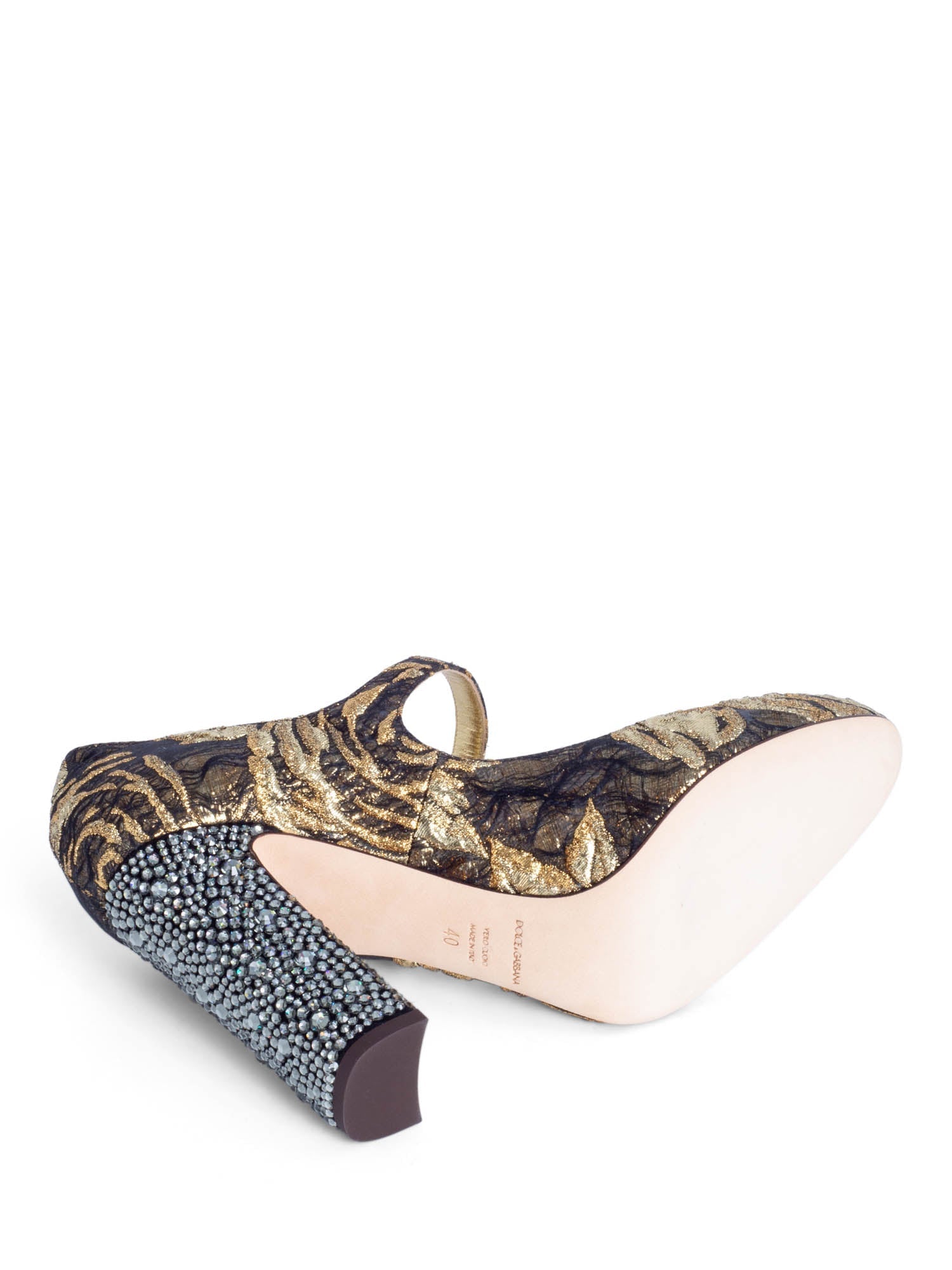 Dolce & Gabbana Brocade Rhinestone Mary Jane Block Heels Gold