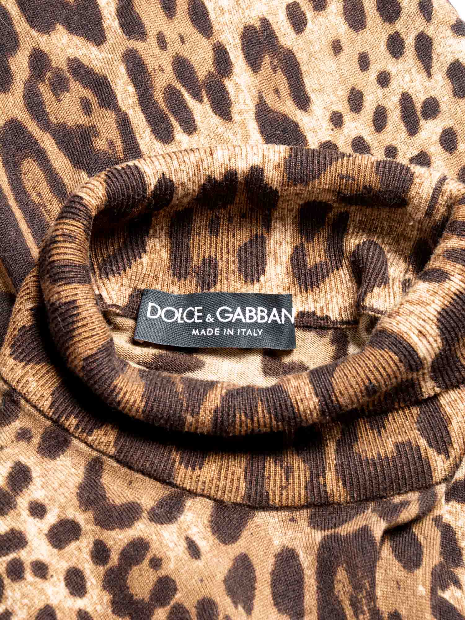 Dolce & Gabbana Cashmere Blend Animal Print Sweater Dress Brown