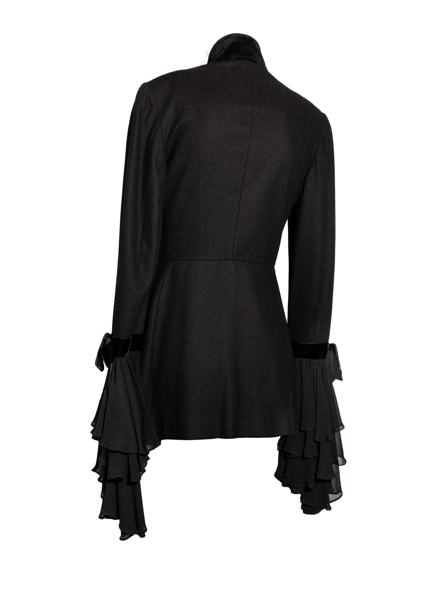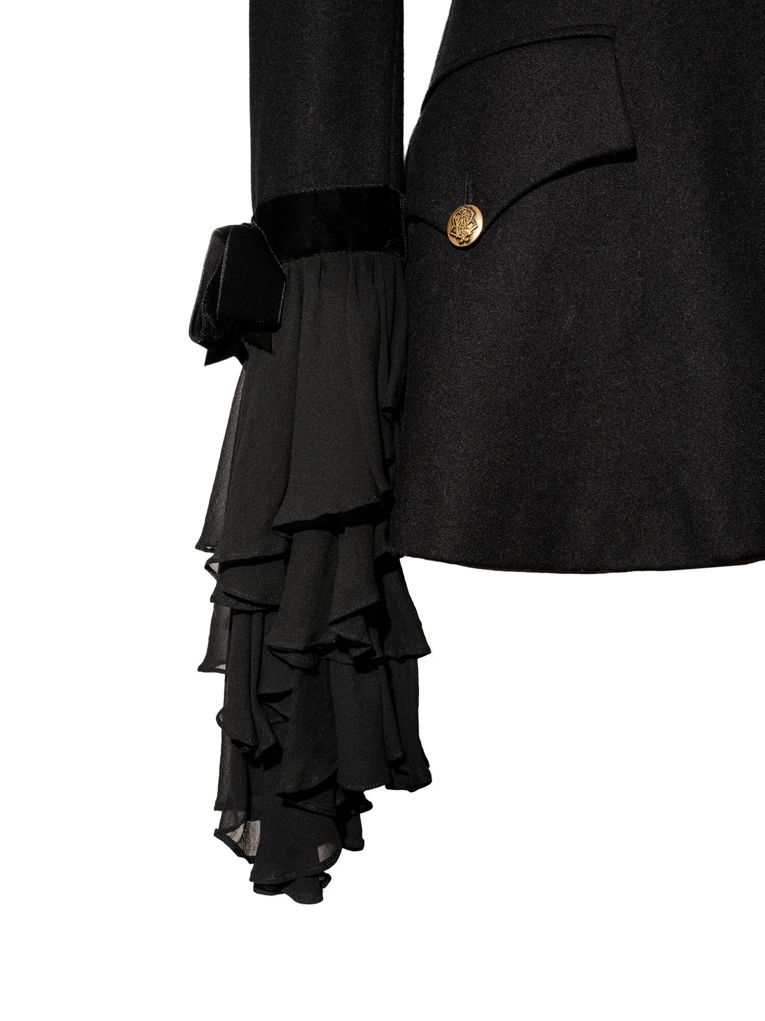 Dolce & Gabbana Military Jacket or . This couture jacket is extremely rare and highly collectable. This stunning jacket is in wool with silk organza cuffs, gold tone double breasted buttons, velvet accents at the collar and cuffs and has 2 front pockets and a silk lining.