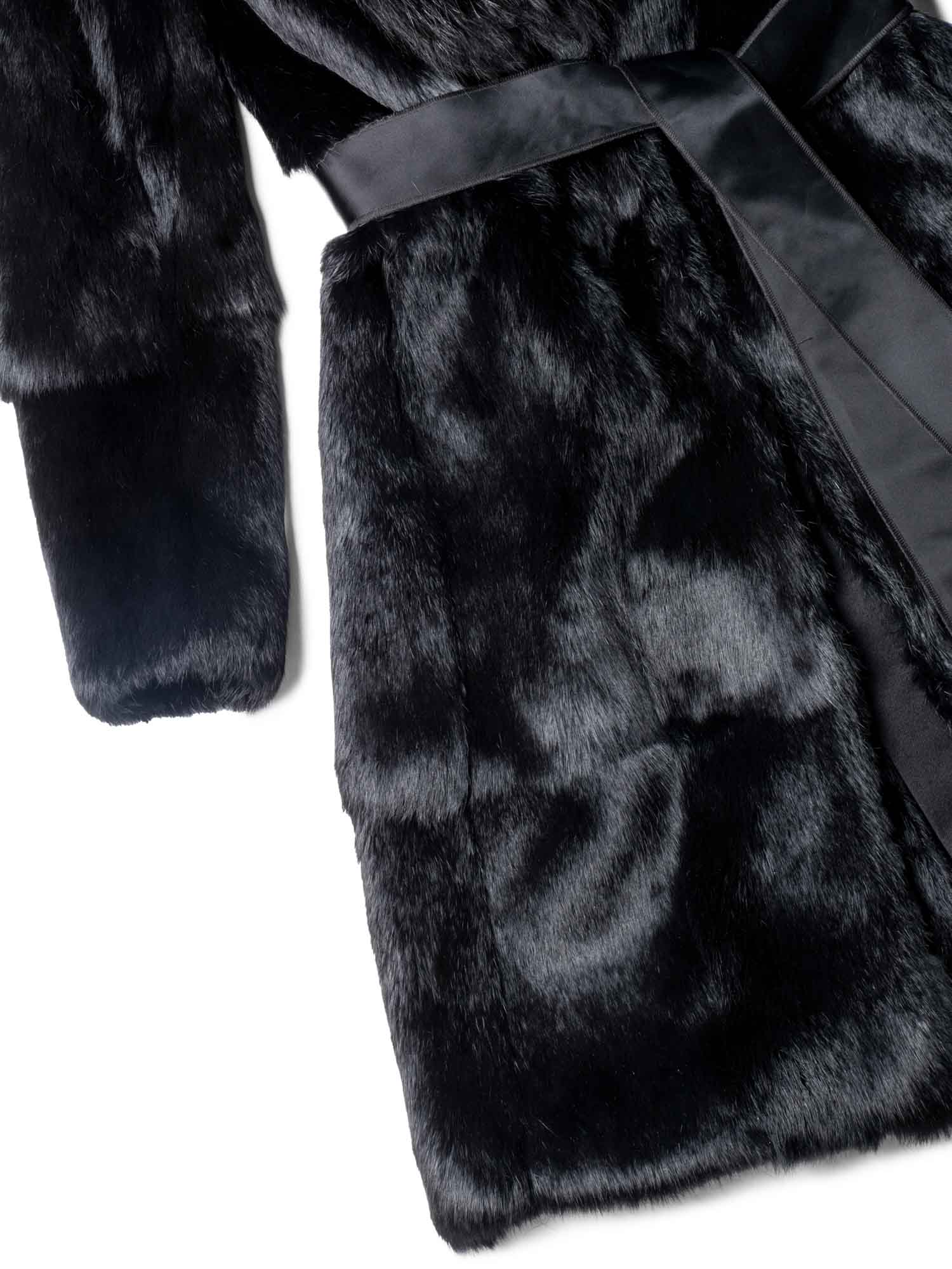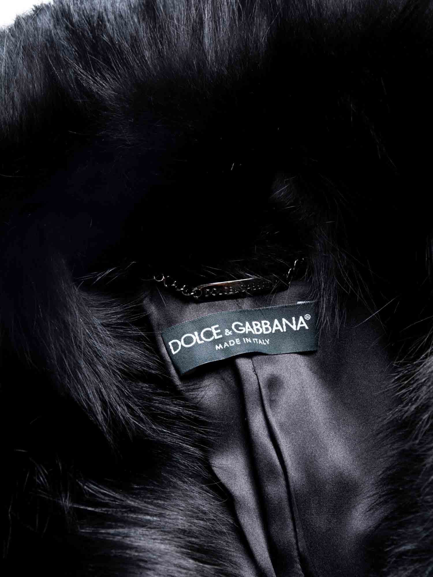 Dolce & Gabbana Genuine Fox Fur Belted Coat Black