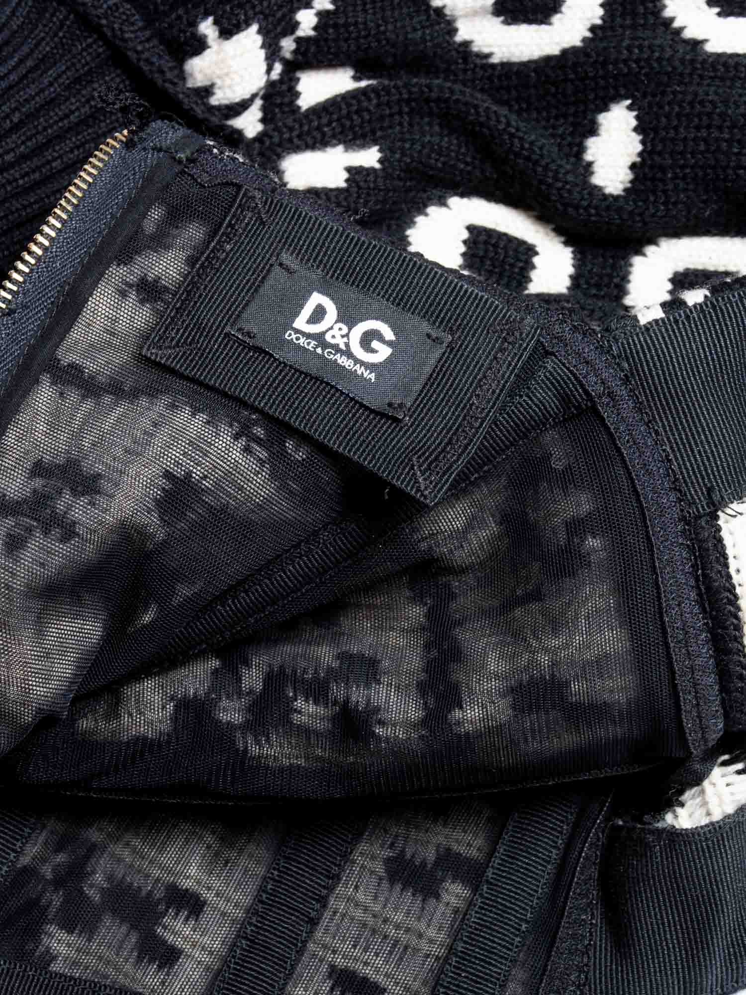 Dolce & Gabbana Top or . It is in a black knitted fabric with a white jacquard design. It features a black zipper closure, a square neckline and puff sleeves.